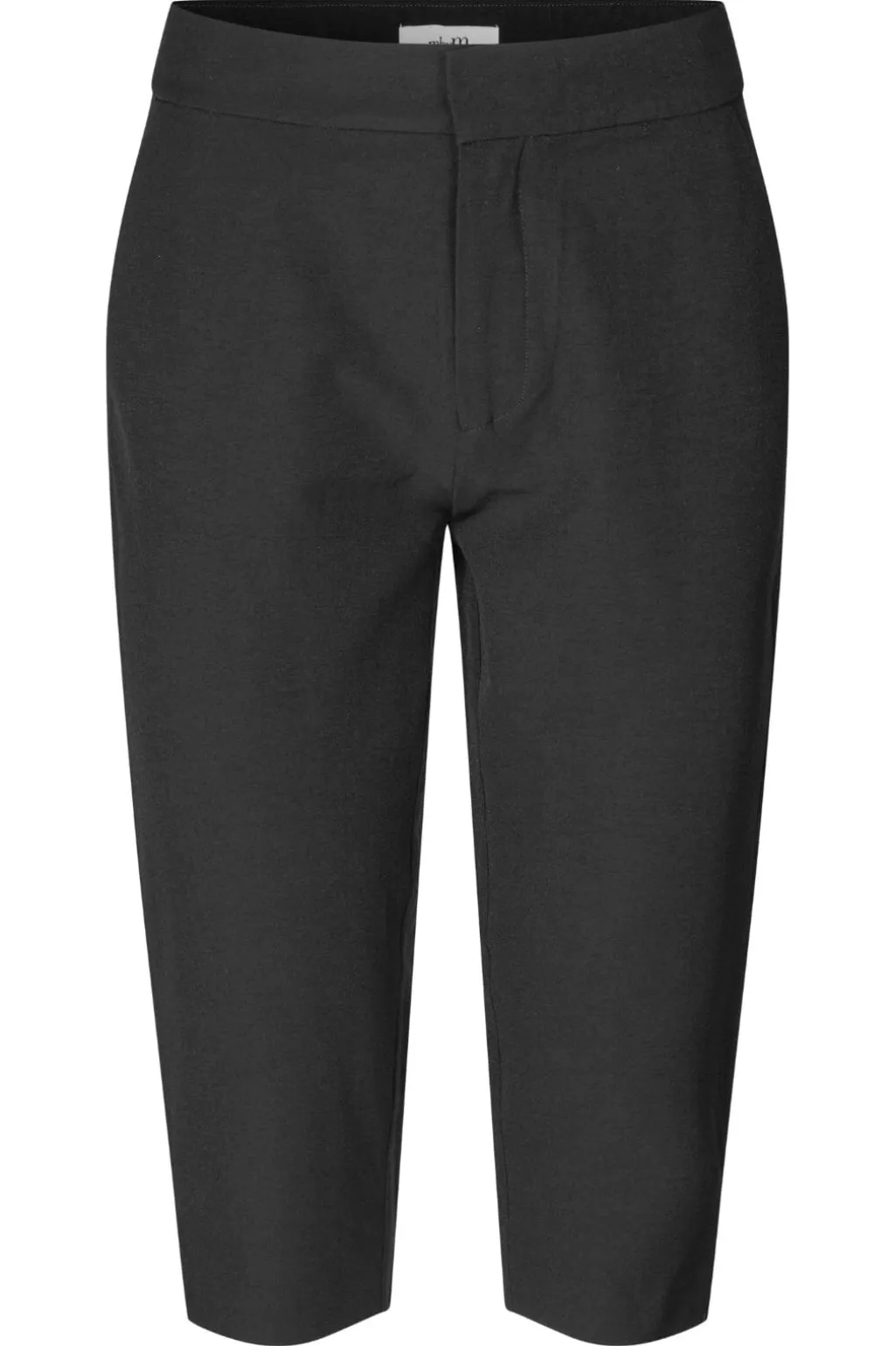 Sorte capribukser fra MbyM i kalvelængde med en normal pasform. Bukserne har et enkelt design med elastisk lukning og er fremstillet i en blød materialekombination.