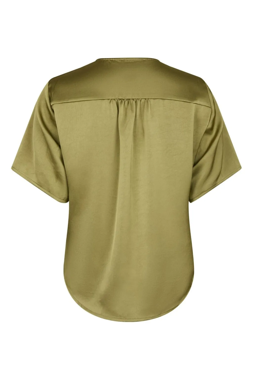 Bluse fra Neo Noir, lavet af tung satin i en grøn Sage Green nuance. Blusen har en løs pasform med korte ærmer og knudedetalje foran.