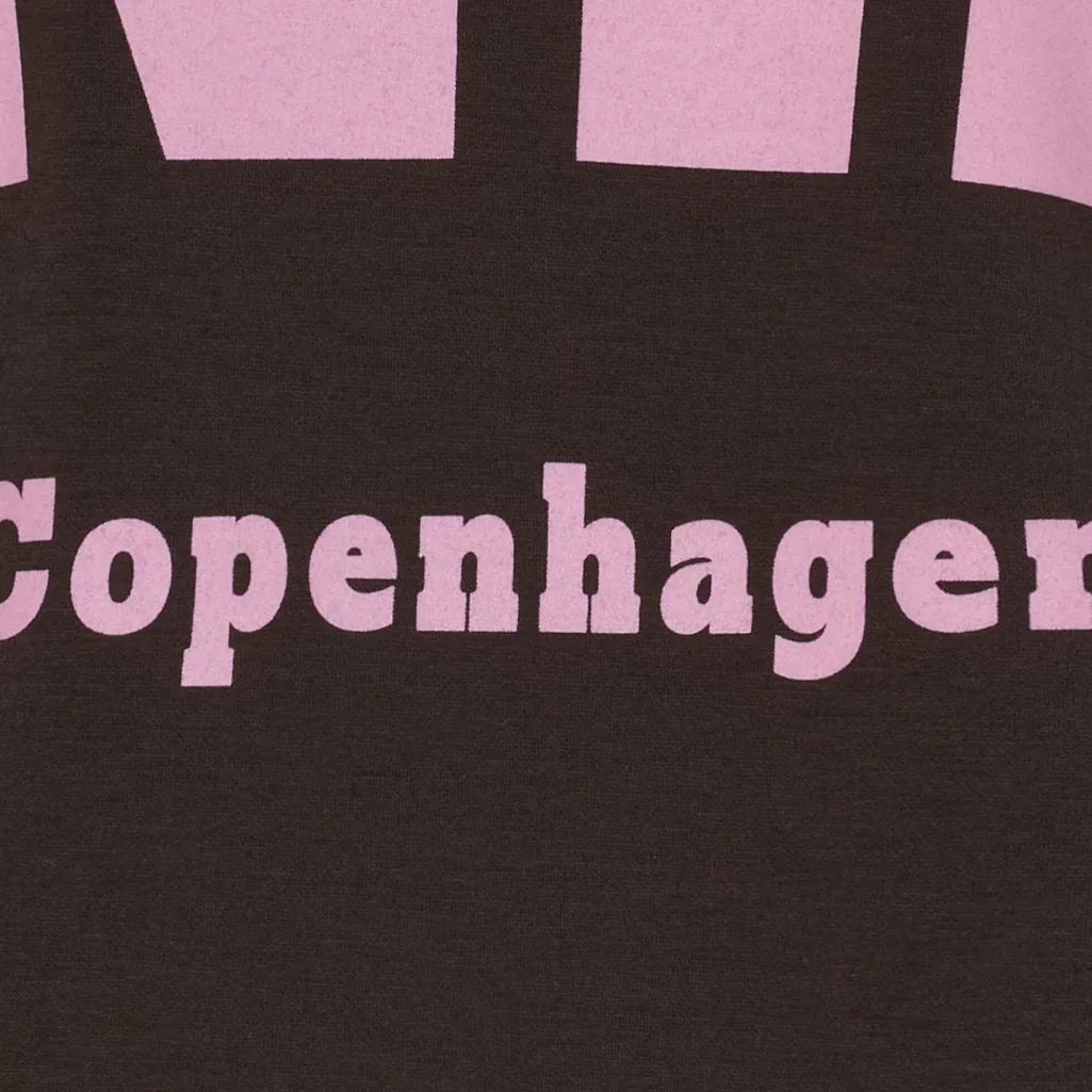 Sort sweatshirt fra Marta Du Chateau med lyserødt Copenhagen-print. Den har store bogstaver på ærmerne og forsiden i en kontrast, der skaber et urbant udtryk.