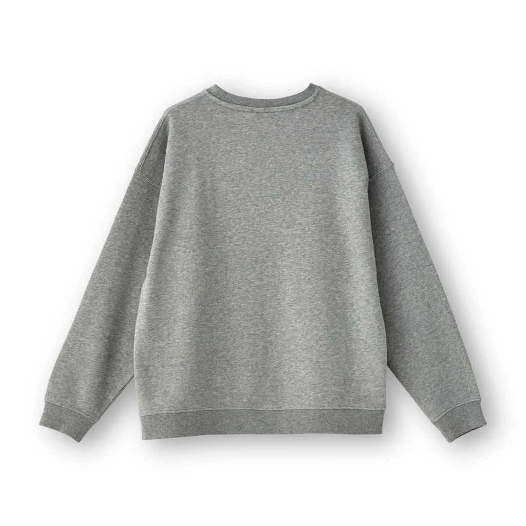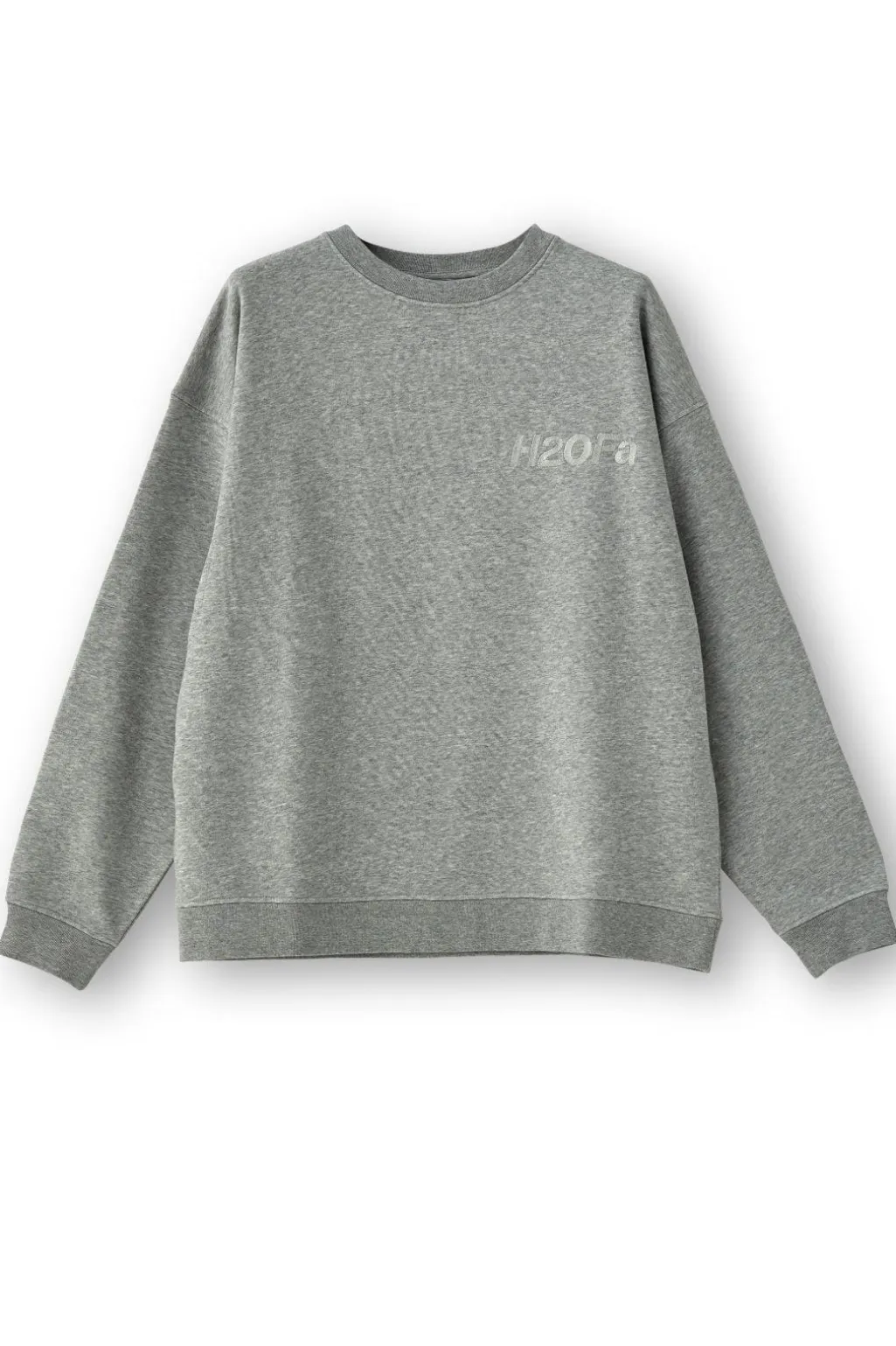 Grå melange sweatshirt fra H2O Fagerholt med oversized pasform og sænkede skuldre. Den har rund hals og broderet H2O-logo på brystet.