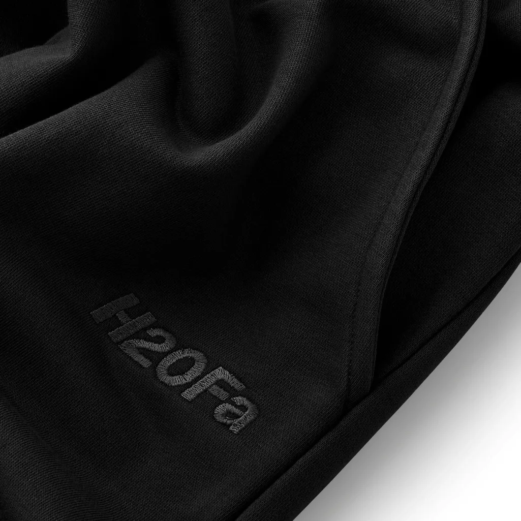 Sorte sweatpants fra H2O Fagerholt i oversized pasform. Bukserne har elastisk talje og manchetter ved anklerne samt et broderet logo på låret.