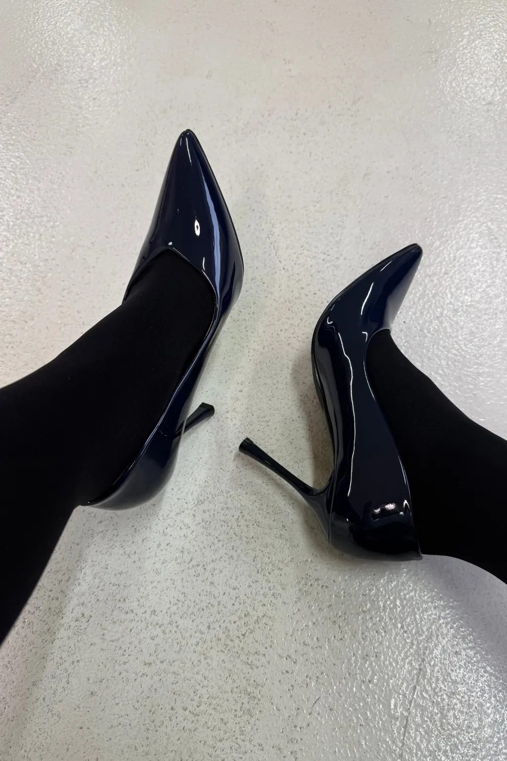 Mørkeblå stiletter fra Bloom med en smal stilethæl. Skoene har en firkantet tå og passer til formelle begivenheder og festlige lejligheder.