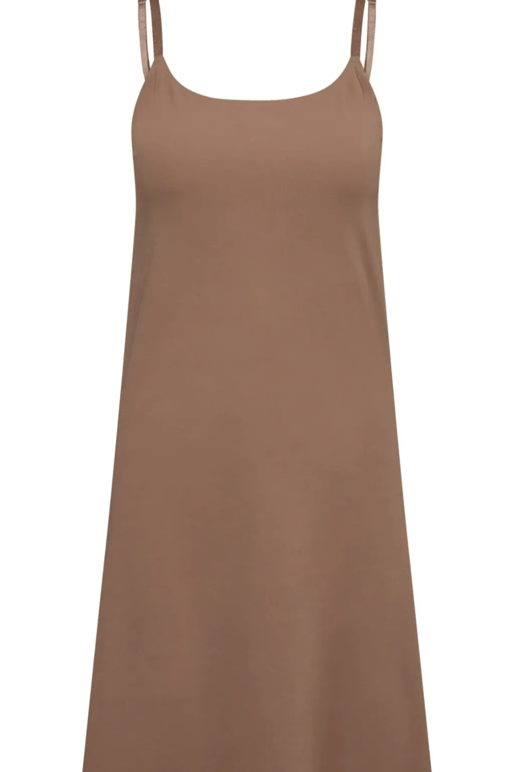 Brun kjole fra Hype The Detail med en enkel og strømlinet silhuet. Kjolen har tynde spaghettistropper og en rund halsudskæring, der giver et rent udtryk.