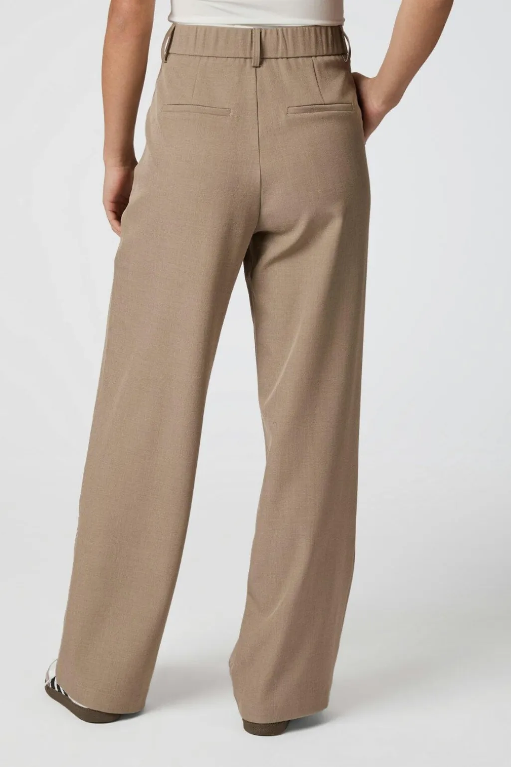 Højtaljede bukser fra Neo Noir i en neutral taupe-nuance. Bukserne har en løs pasform med brede ben og er fremstillet i en tyk kvalitet.