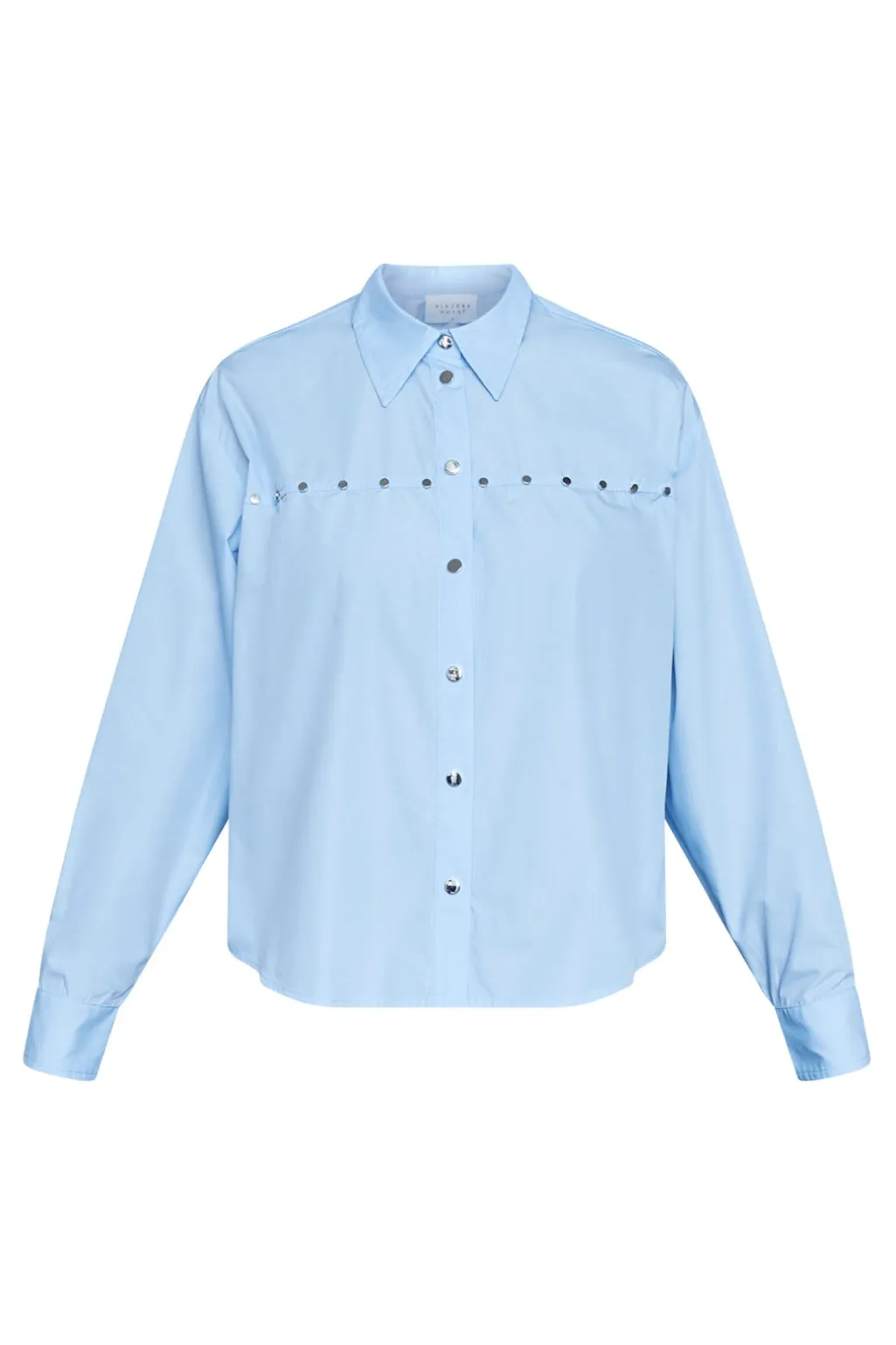 Lyseblå skjorte fra Sisters Point. Den er velegnet til både afslappede hverdage og festlige lejligheder med sit klassiske snit og dekorative detaljer.