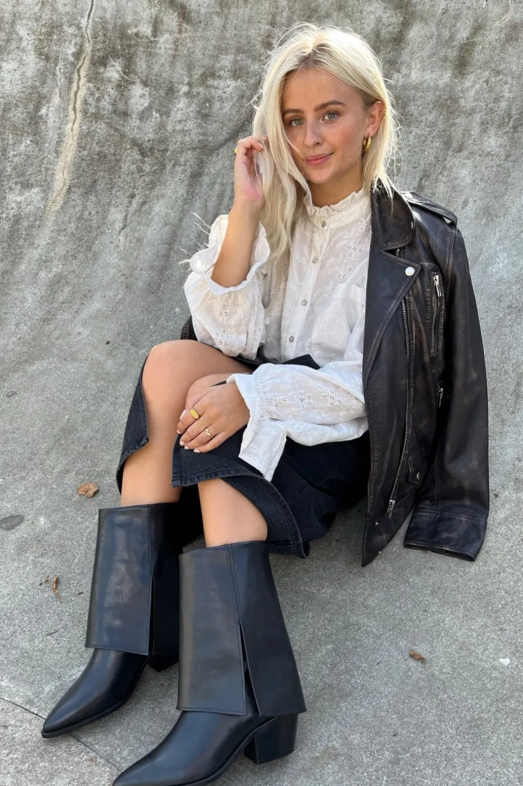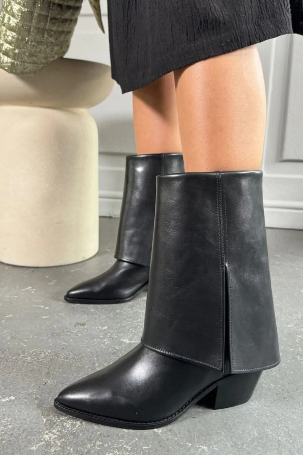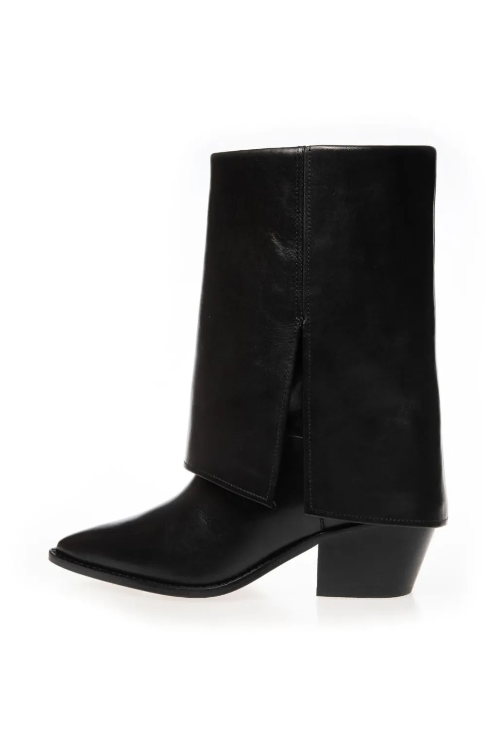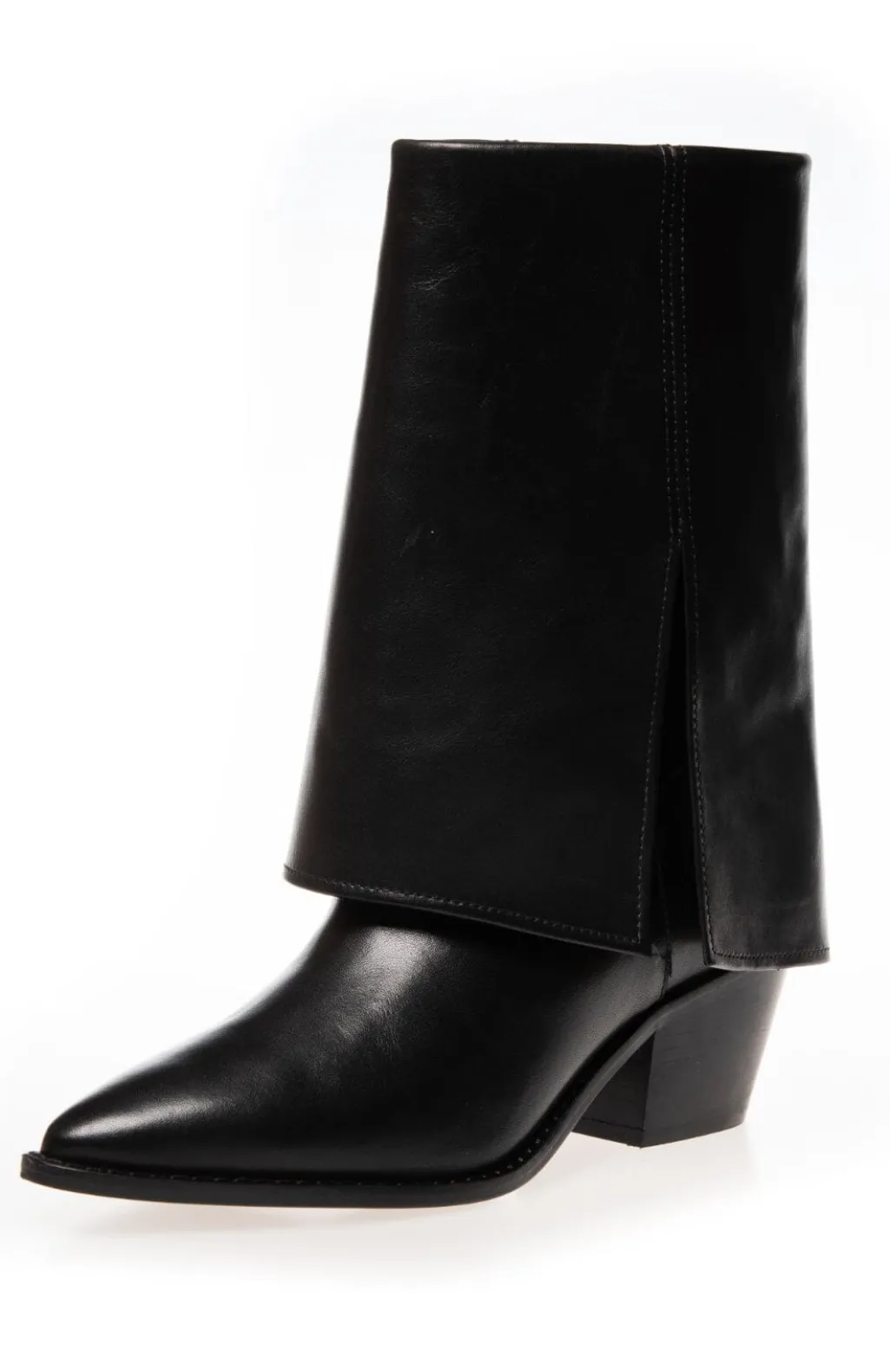 Sort læderstøvle fra Copenhagen Shoes med spids tå og blokhæl. Støvlen har en indersål af læder med specialskum på 4-6 millimeter for god støddæmpning.