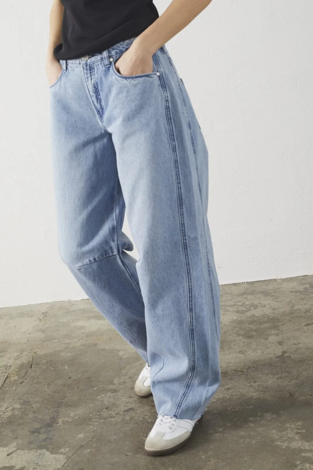 Lyseblå jeans fra Sisters Point med høj talje og loose fit. De er lavet i denim med lyse syninger og har både for- og baglommer.
