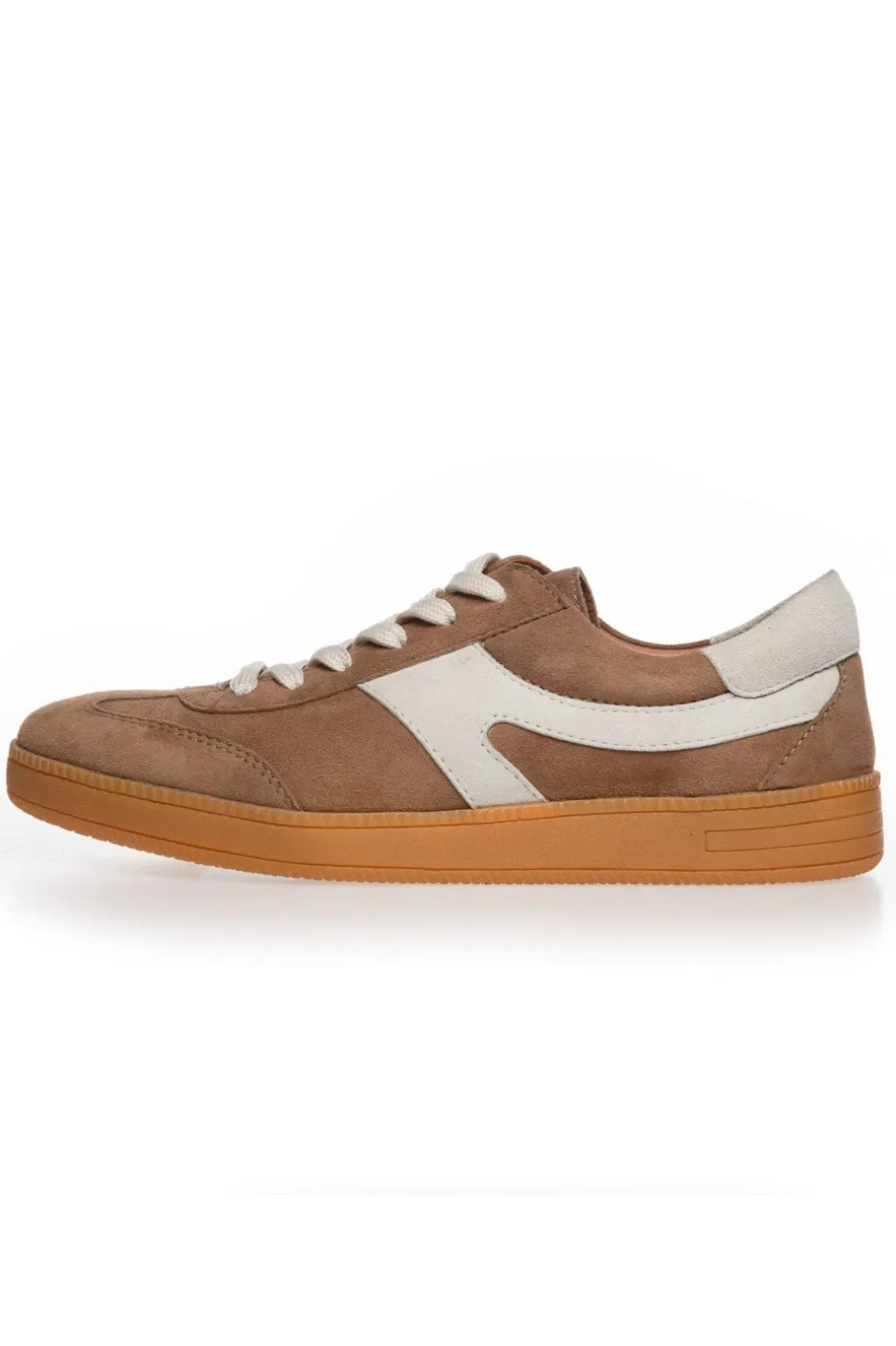 Sneakers fra Copenhagen Shoes i ruskind med en neutral taupe-farve. Skoene har hvide detaljer og en gummisål, der giver et afslappet og praktisk look.
