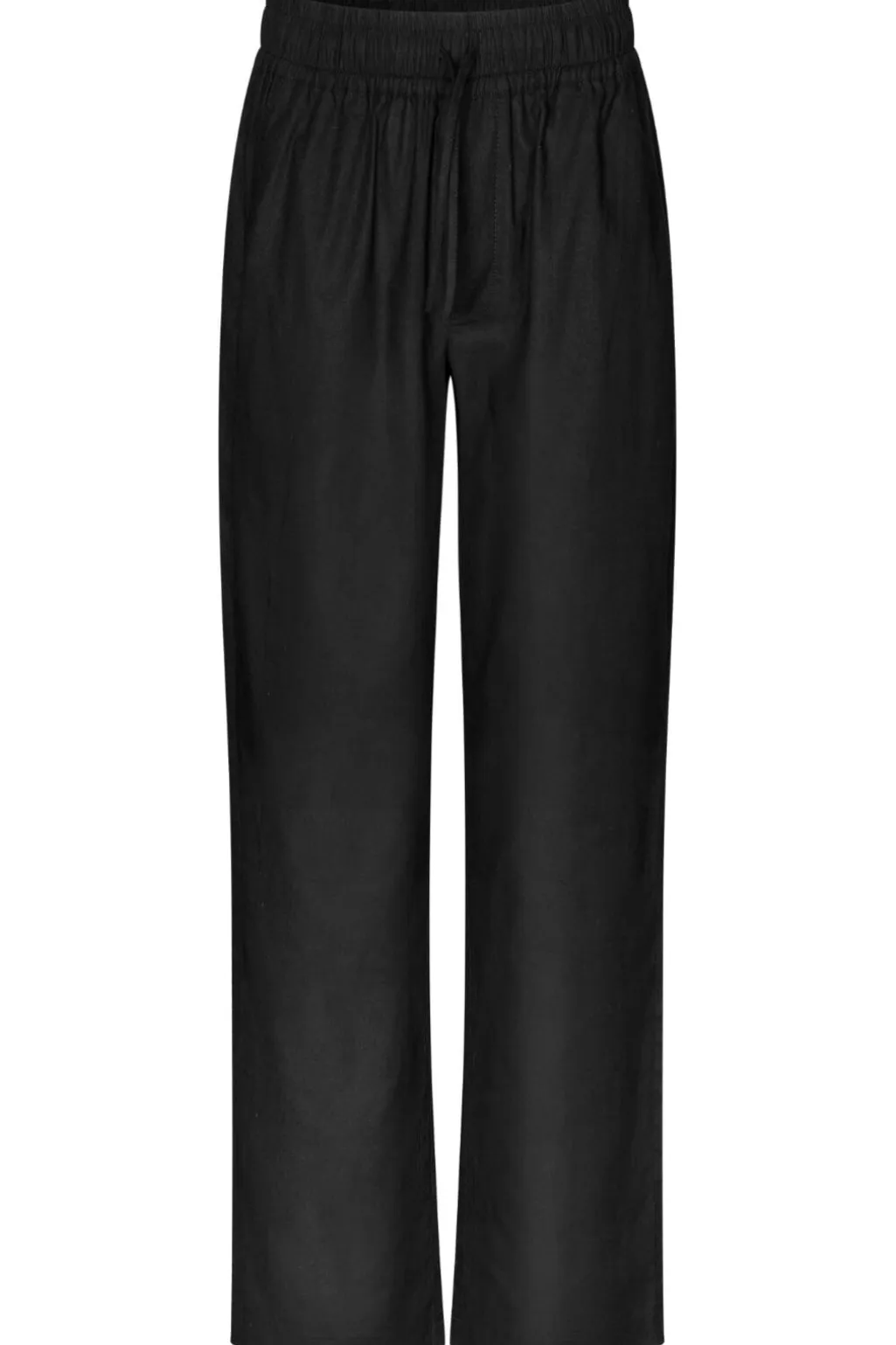 Sorte bukser fra MbyM med afslappet pasform og ankellængde. Bukserne har en elastisk talje med snørelukning og er lavet af en blanding af bomuld og hør.