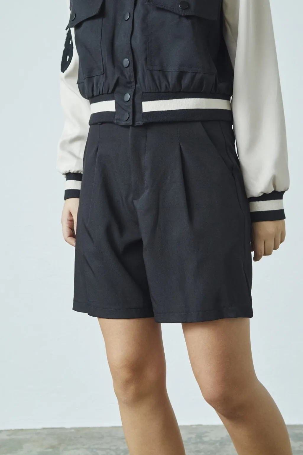Sorte shorts fra Sisters Point med høj talje og løs pasform. Shortsene har læg foran og skrålommer i siderne samt en praktisk baglomme.
