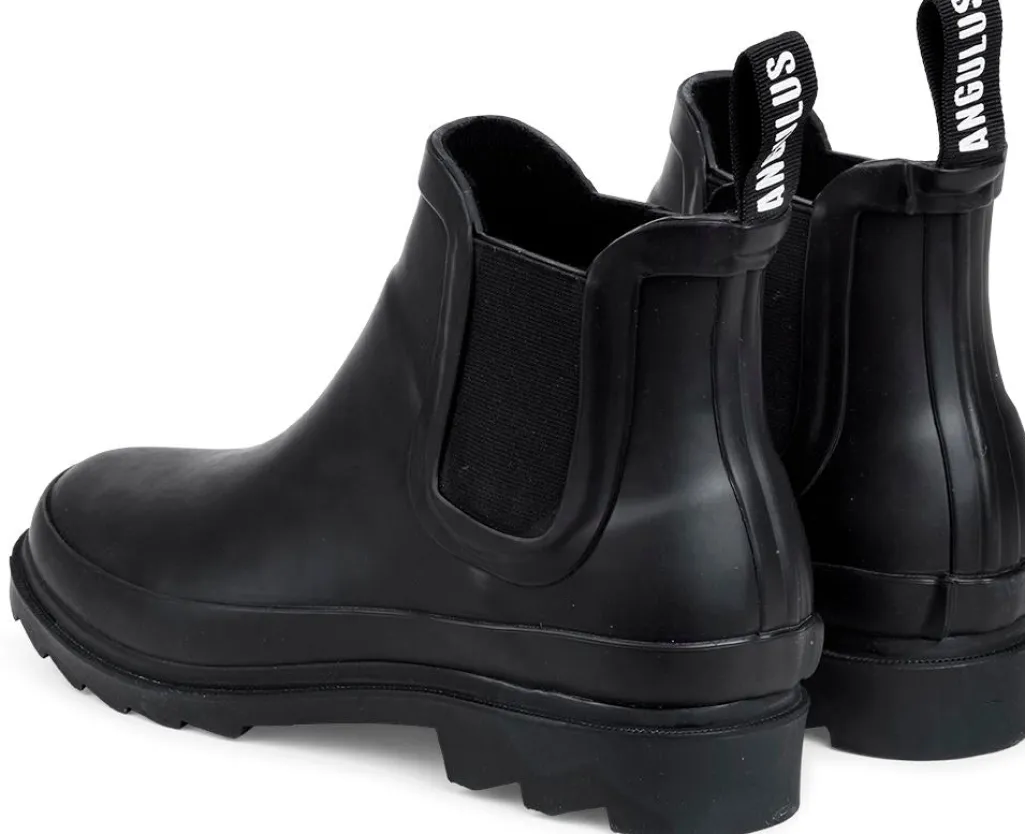 Super fine gummistøvler fra Angulus med elastik i siderne. Der medfølger en army farvet pose til med nude stropper. Der er Angulus mærke på posen.