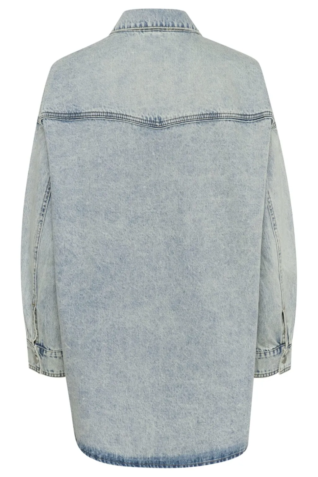 Denimskjorte fra Gestuz i en lys acid wash. Skjorten har en oversized pasform med lange ærmer og klassisk krave.