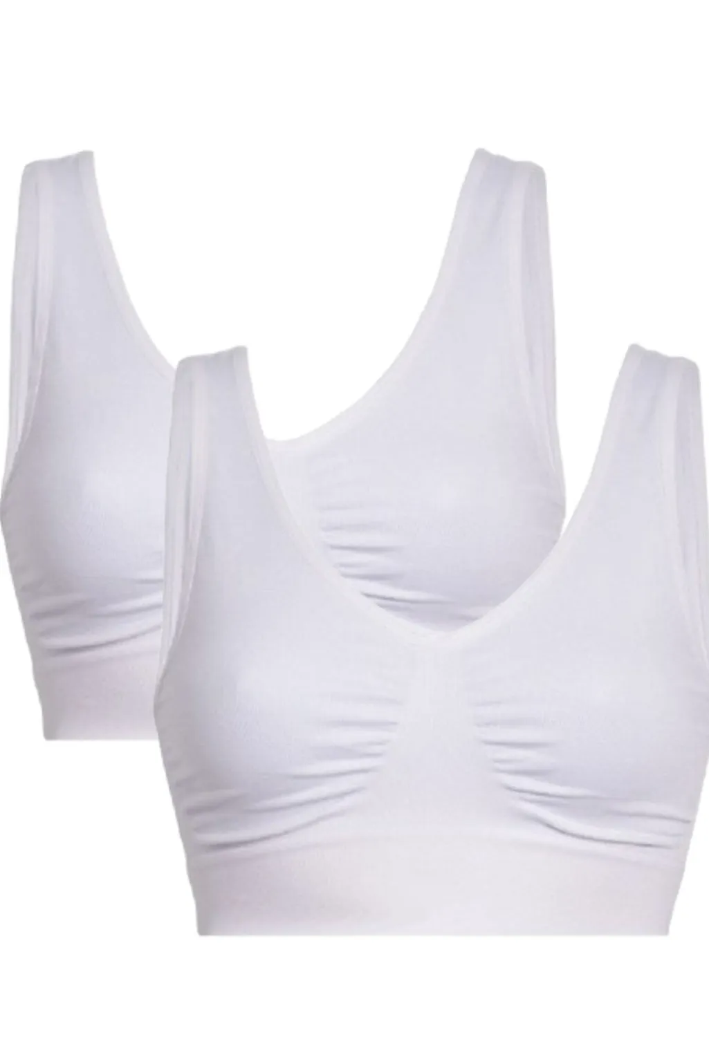 Hvid bra-top fra Soft Basic med brede stropper. Fremstillet af bambusviskose, der giver en blød og åndbar fornemmelse mod huden. Sælges i pakke med to stykker.