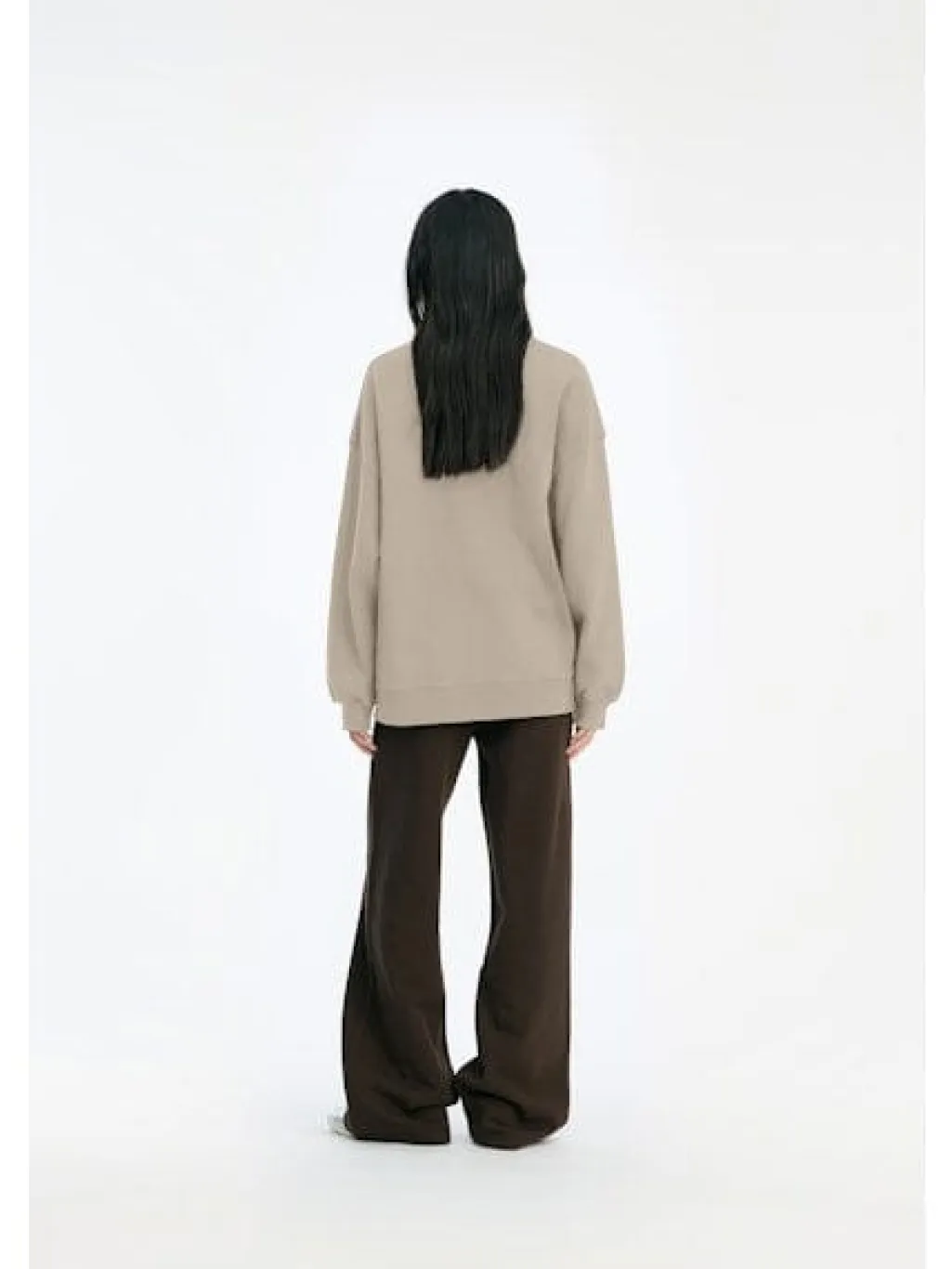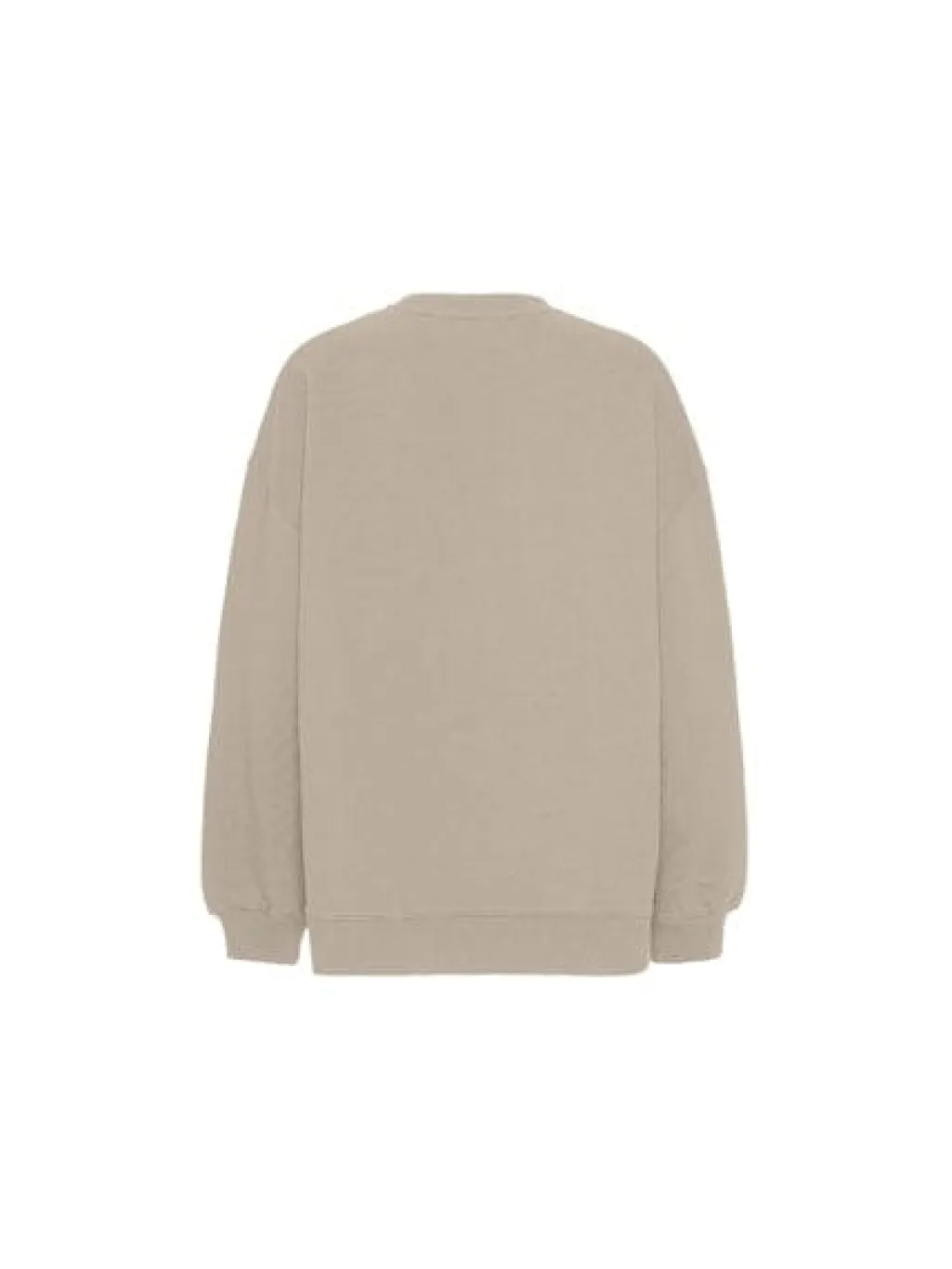 Crewneck sweatshirt fra Rotate i en beige-grå cementfarve. Sweatshirten har en oversized pasform og hvidt ROTATE broderi på brystet.