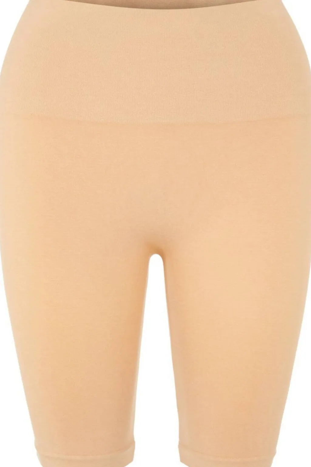 Shapewear-shorts fra Pieces i tan-farve. Shortsene har en høj andel af strækbart materiale, der former sig efter kroppen og giver støtte under tøjet.