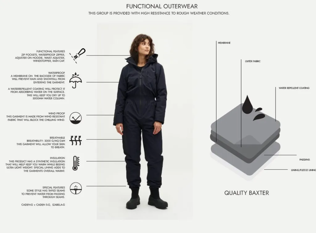 Xl skulder til skridt: 87 cm, Xl skulder til ankler: 158 cm, Xl taljen: 102 cm, Xl hofterne: 114 cm, Xl skridt og ned: 76 cm