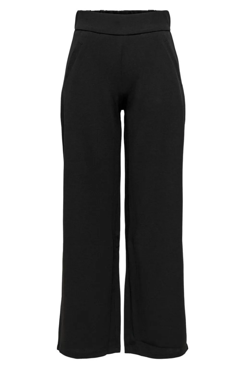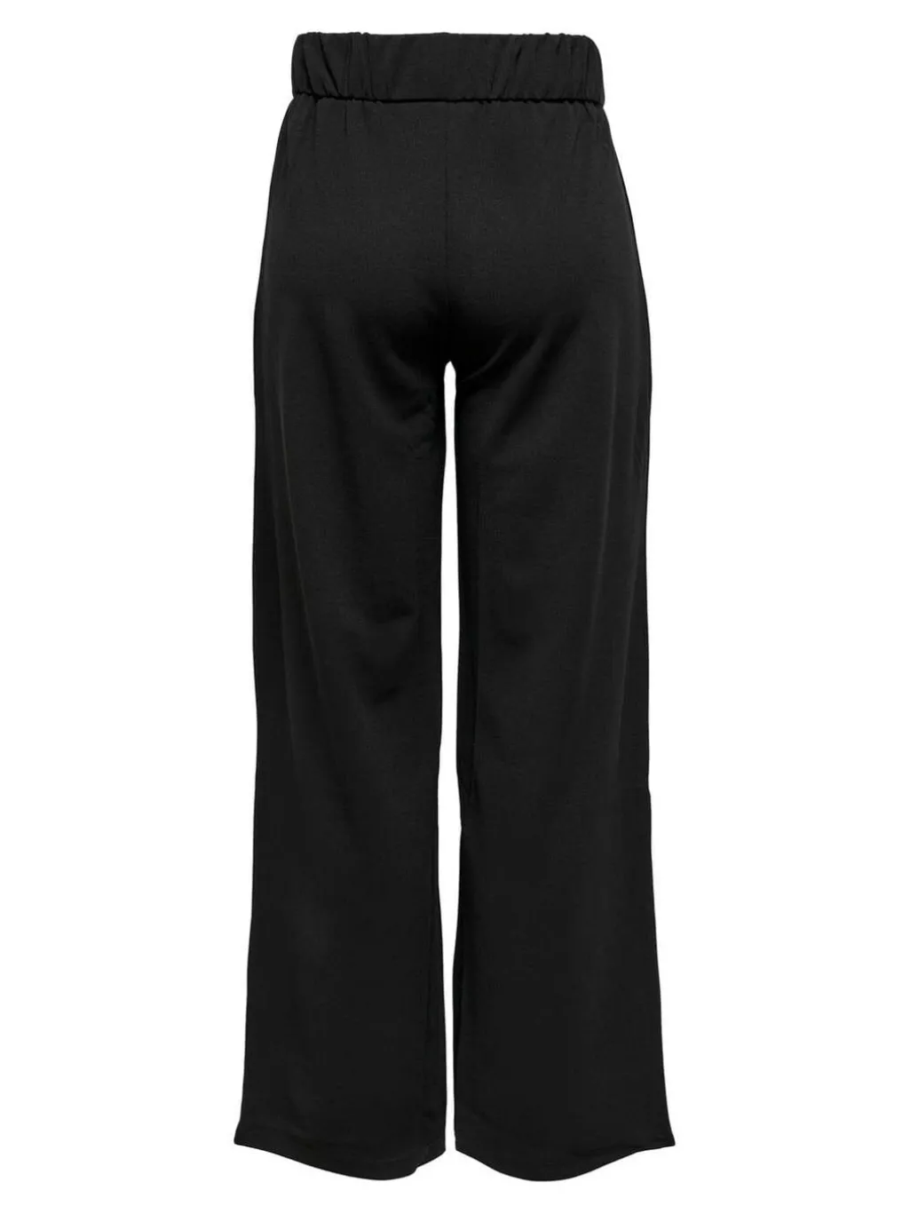 Sorte bukser fra JDY med høj talje og wide-leg snit. Bukserne har elastisk talje og sidelommer, og stoffet er en blanding af genanvendt polyester og elastan.