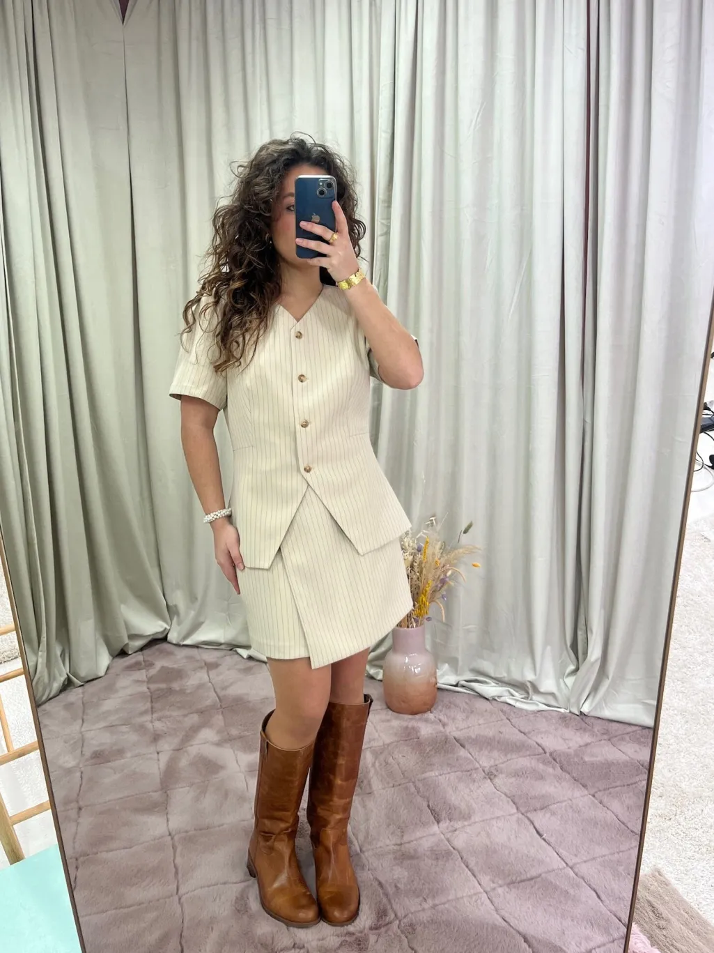 - Modellen er 176 cm høj og bærer størrelse 36
