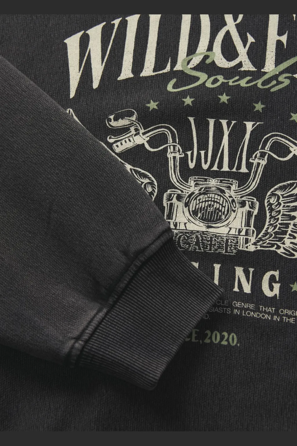 Ingen garderobe er komplet uden et par pålidelige basisvarer som sweats.Fleece er et let og blødt stof, der er perfekt til koldt vejr, fordi det er varmt uden at være tungt eller omfangsrigt.- Produkttype: Sweatshirt – Hals: O-hals – Ærme: Lange ærmer – Vask/behandling: Acid wash, som giver et ekstra bleget look og en blødere overflade – Pasform: Relaxed fit