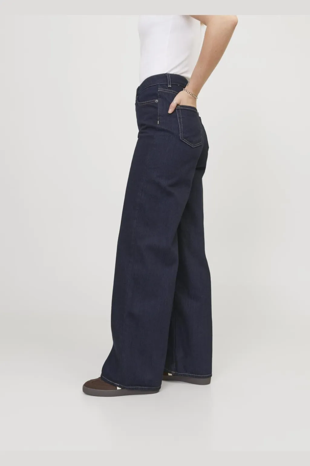 Mørkeblå jeans fra Jjxx med høj talje og wide leg-snit. Jeansene har en blød fornemmelse fra skyllevasken og er fremstillet af uelastisk denim med genanvendt bomuld.