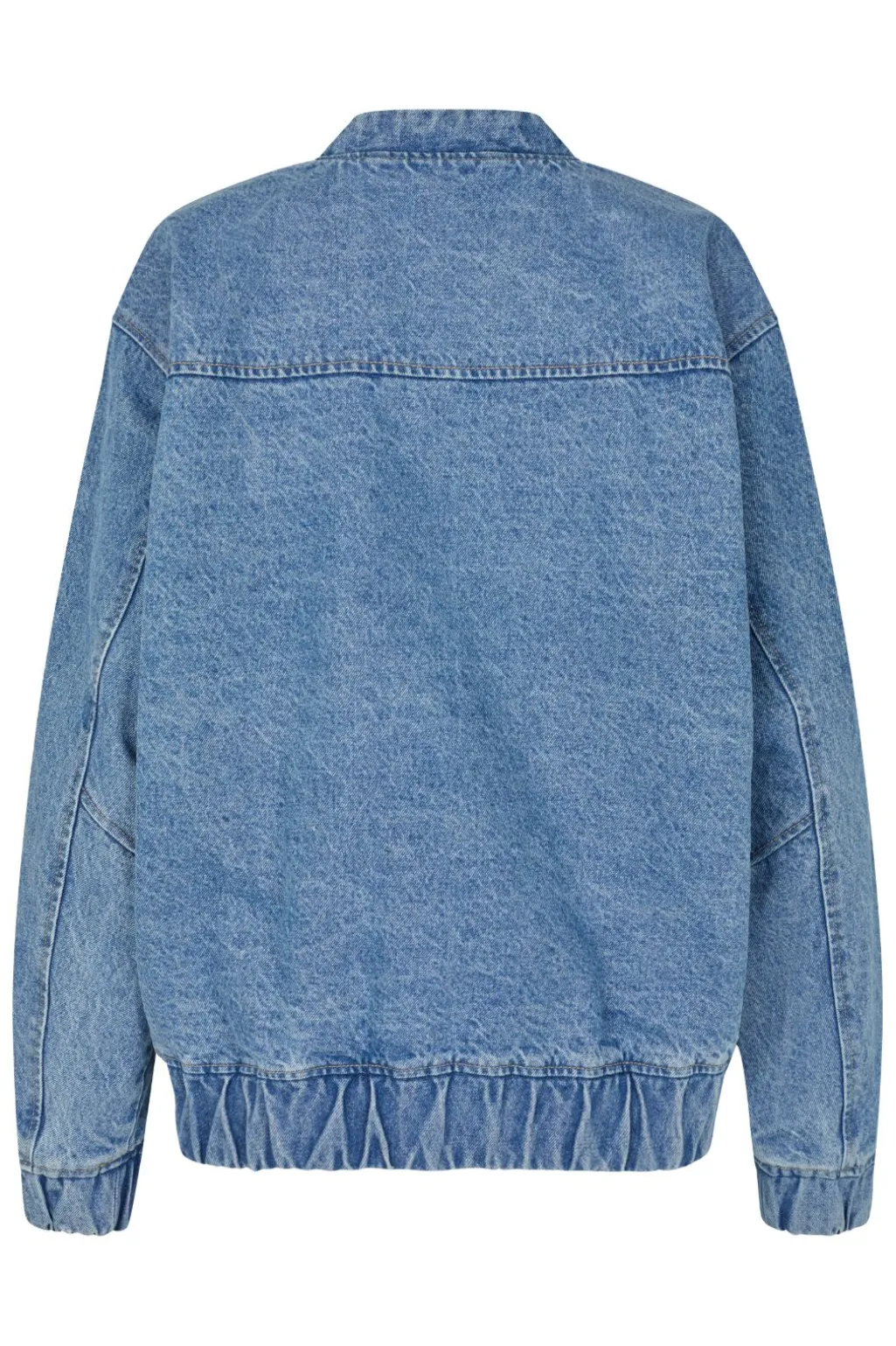 Denimjakke fra Global Funk i vintage blå med acid wash-effekt. Jakken har en rund hals og lynlåslukning foran. De praktiske sidelommer og lange ærmer gør jakken brugbar året rundt.