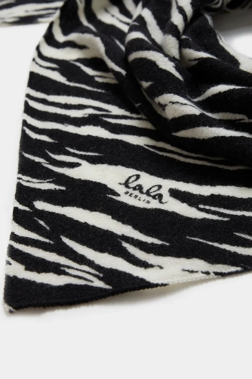 Trekantet tørklæde fra Lala Berlin med sort-hvidt tigerstribemønster. Lavet af en cashmereblanding med et trykt dyreprint.