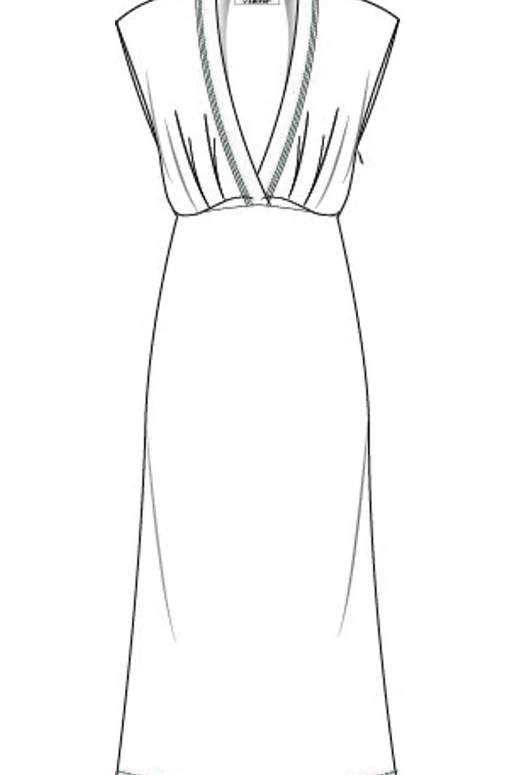 Sort kjole fra Haute L’Amitié med draperet design og V-udskæring. Kjolen har korte ærmer og rækker til midt på læggen.