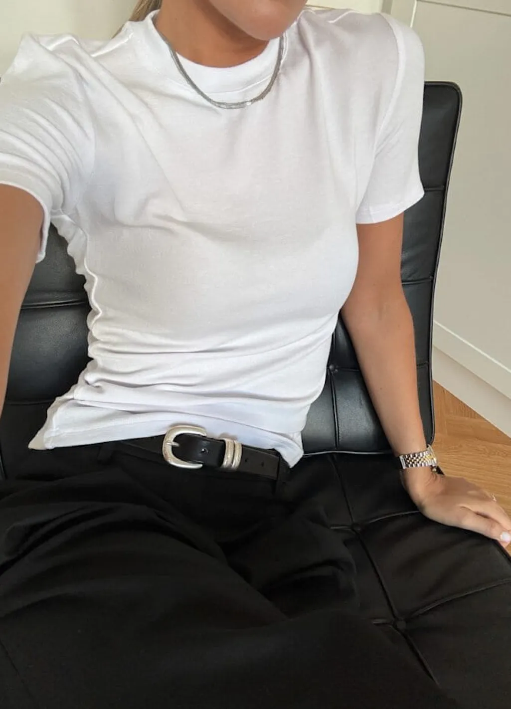 Hvid T-shirt fra Noella med korte ærmer og rund halsudskæring. T-shirten har en tætsiddende pasform og er lavet af viskose og elastan.