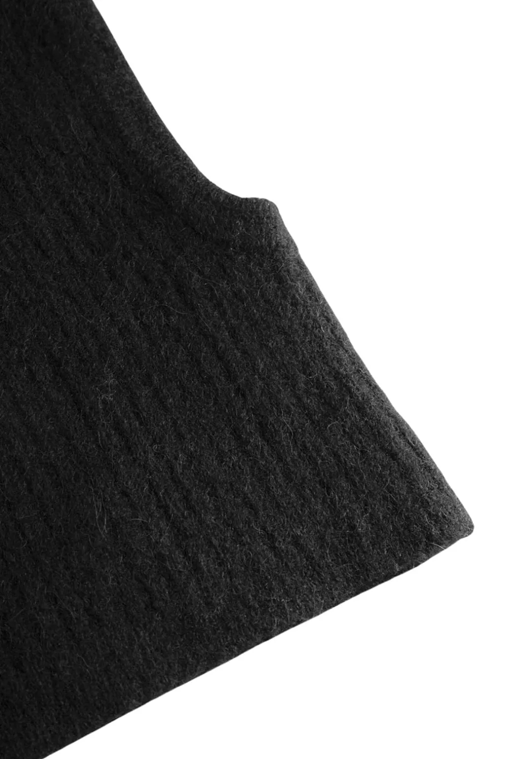Sort balaclava fra Twist & Tango med ribbet tekstur og omfattende hoveddækning. Den har en løs pasform og er lavet af en blanding af babyalpaka.