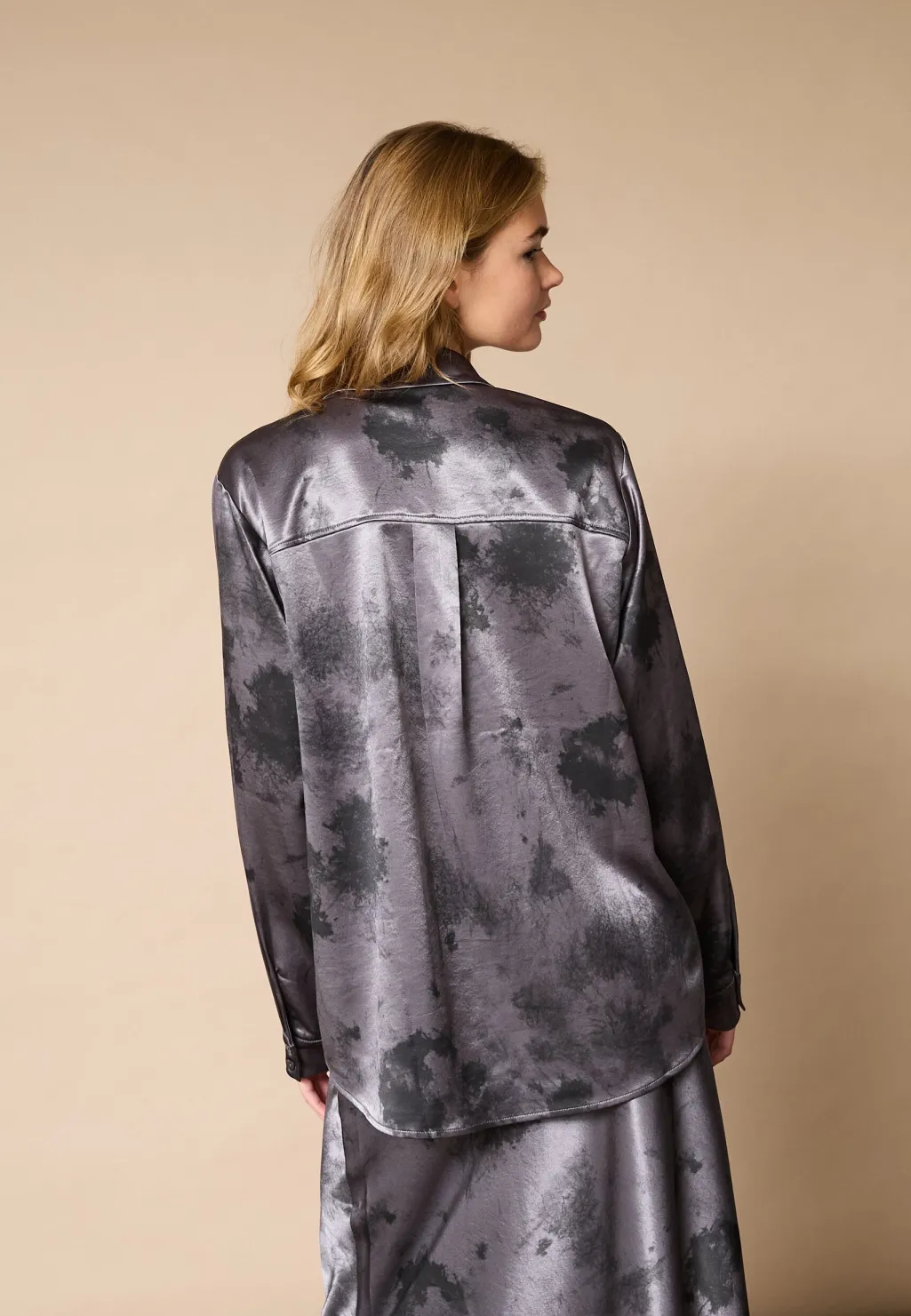 Skjorte fra Love & Divine i grå med et skinnende marmoreret print. Skjorten har en oversized pasform og klassisk skjortekrave.
