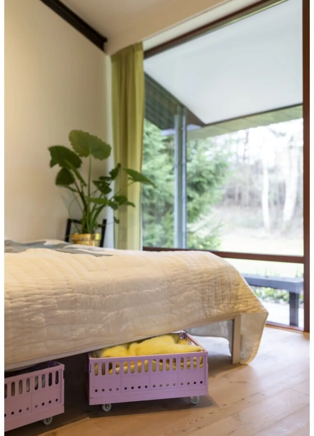 Opbevaringskasse fra Made Crate i blød fuchsia. En stabelbar kasse i genanvendt plast, der er velegnet til fødevareopbevaring i køleskabet.