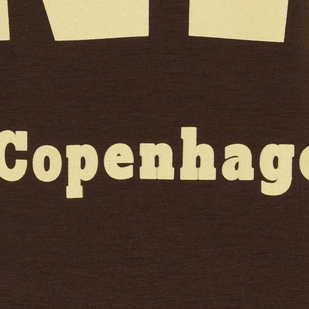 Brun sweatshirt fra Marta Du Chateau med rund hals og oversized pasform. Den har store gule bogstaver på fronten og ærmerne med teksten COPENHAGEN.
