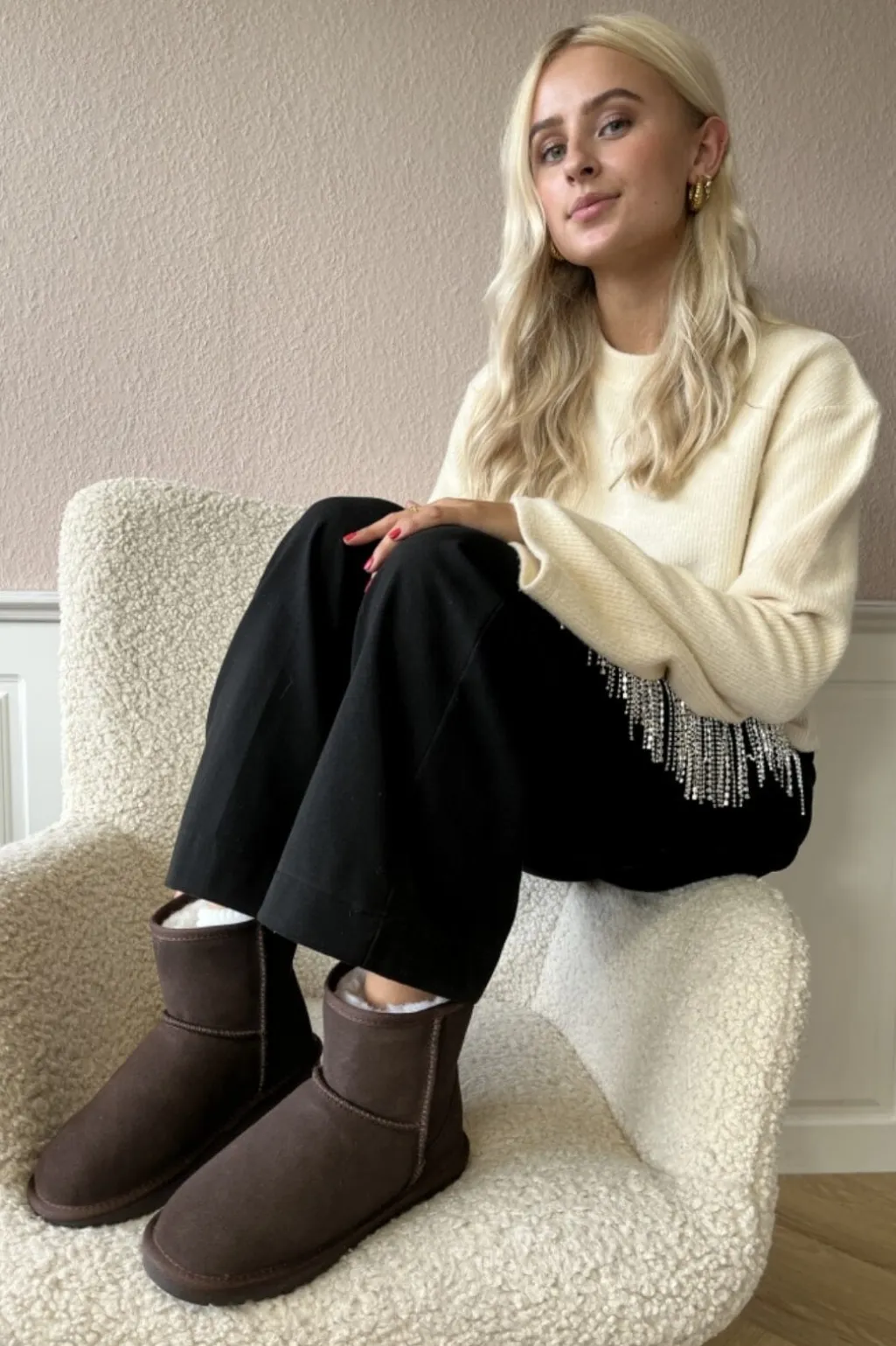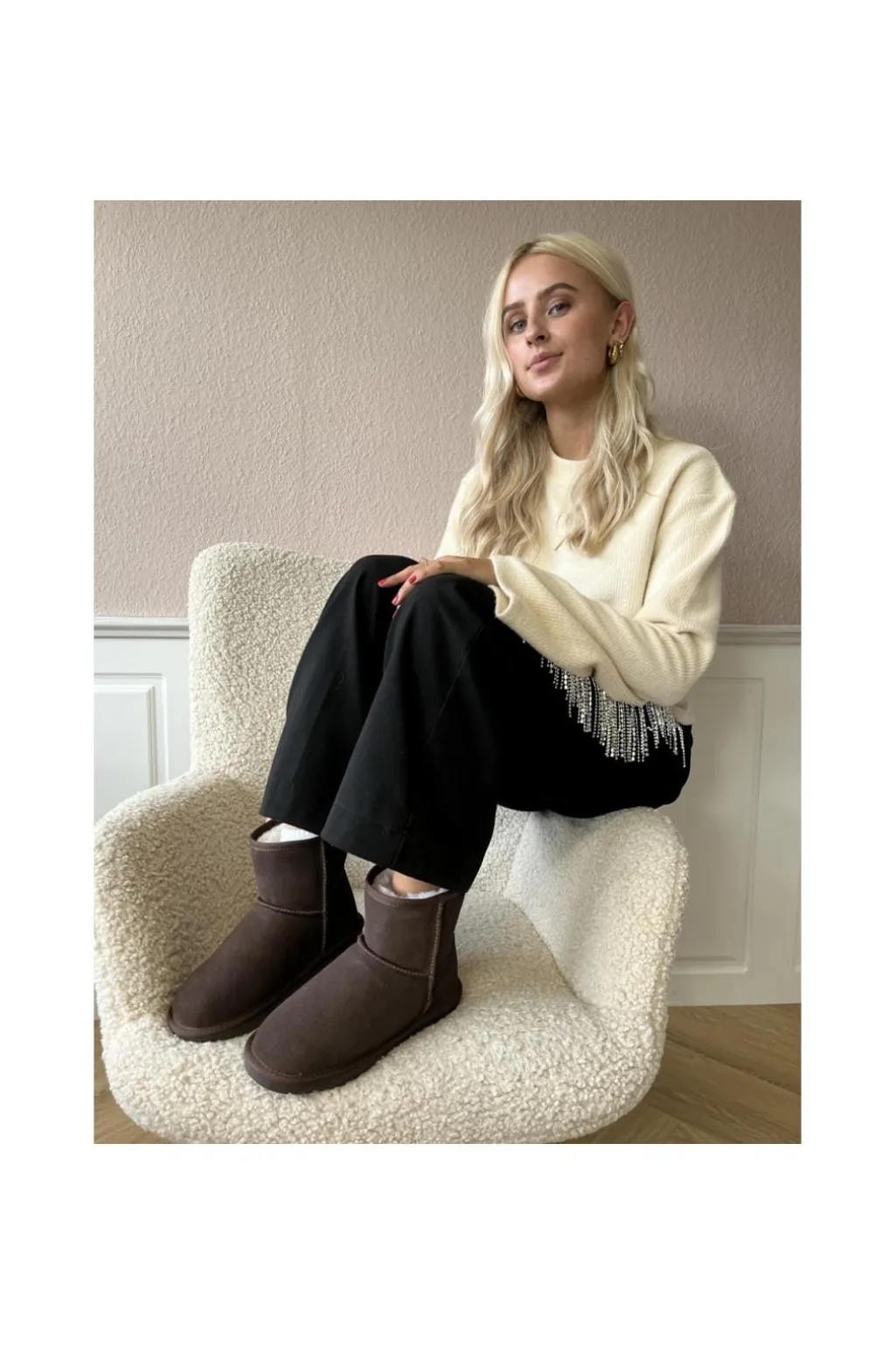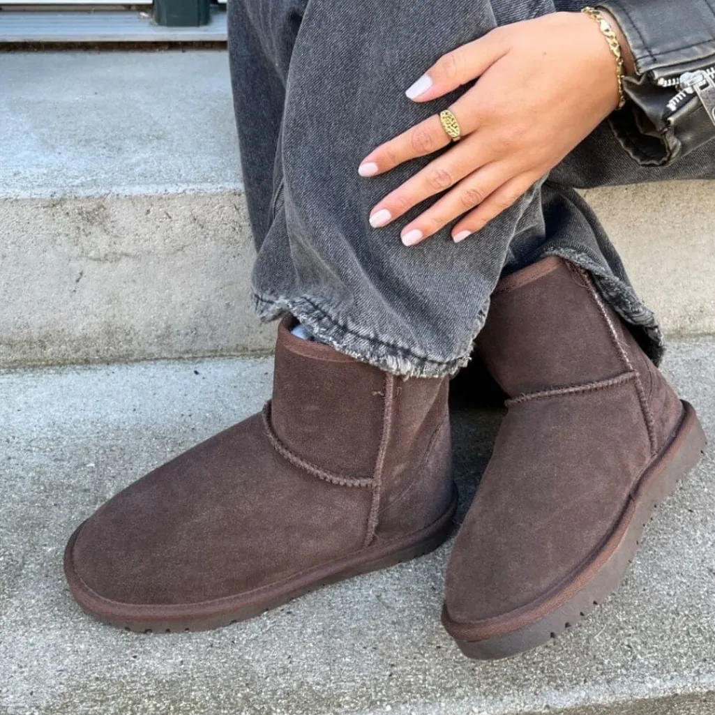 Mørkebrun støvle fra Copenhagen Shoes i ruskind og læder. Støvlen har et blødt pelsfor med uld og er udstyret med letvægtsåler.