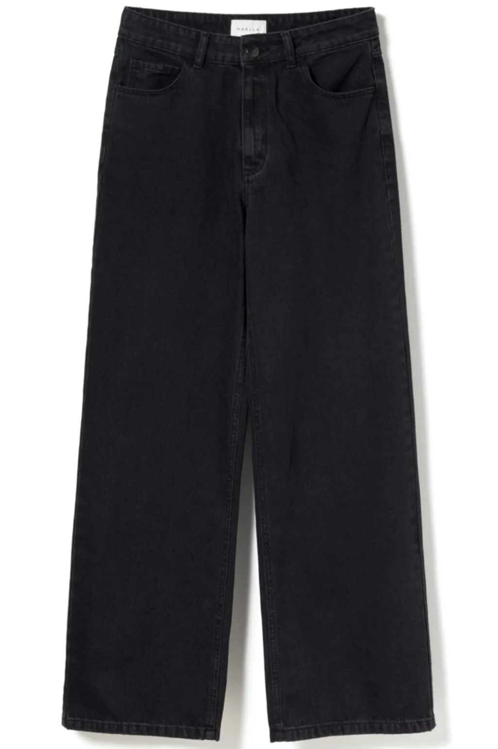 Sorte jeans fra Noella med bred benform. Bukserne har en mellemhøj talje og en løs pasform, der giver god bevægelsesfrihed. De kommer i en sort vask med rene linjer.