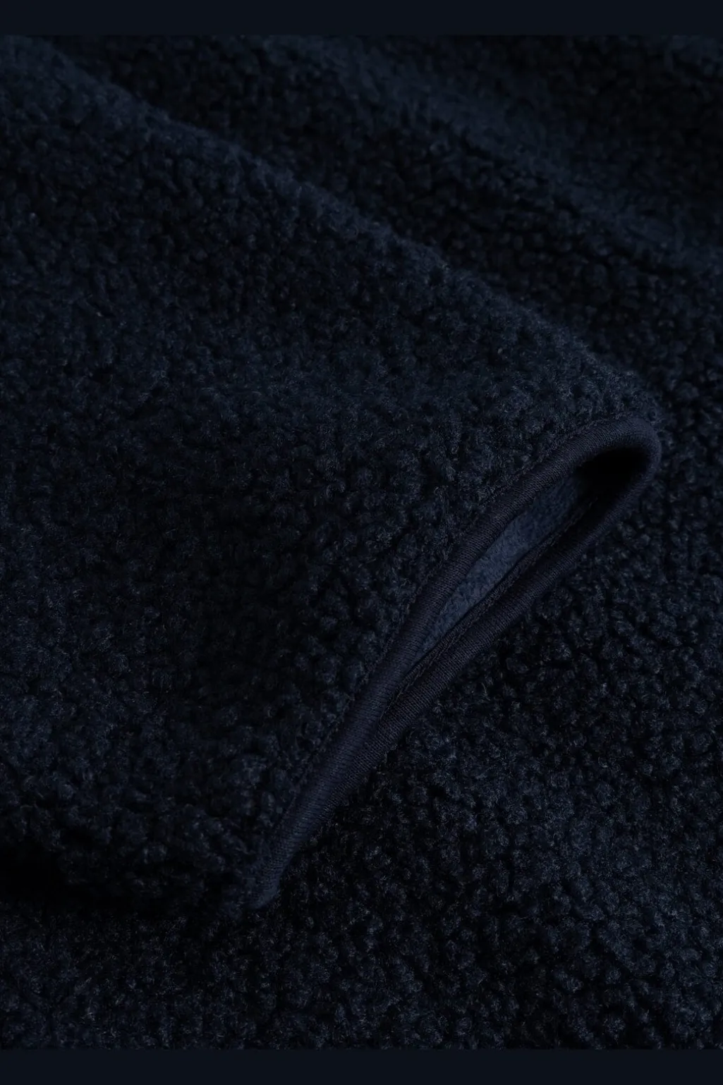 Teddyjakke fra Noella i mørkeblå. Jakken er lavet af blødt teddystof og har en høj hals.