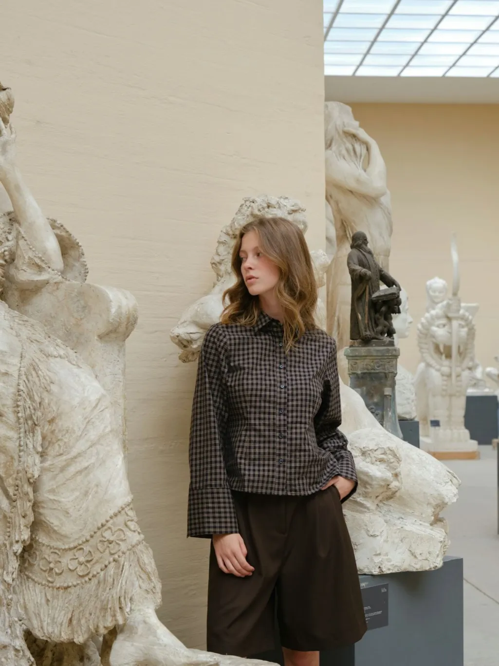 - Modellen er 176 cm høj og bærer størrelse 36