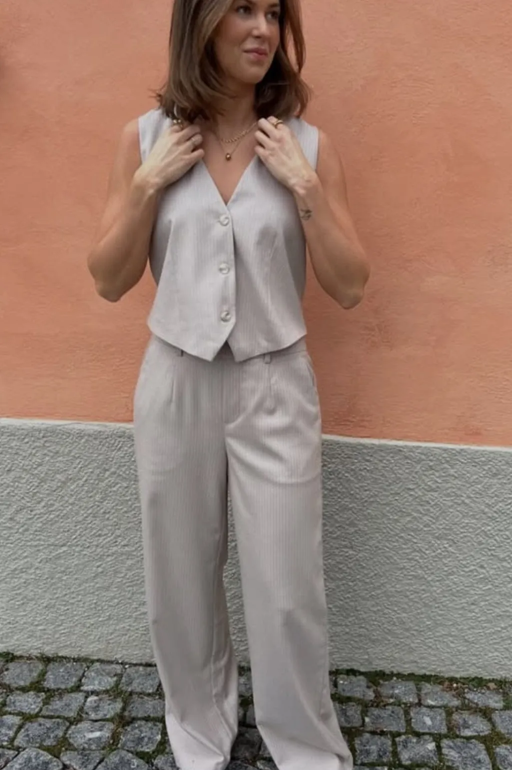 - Pinstripe mønster i beige nuancer