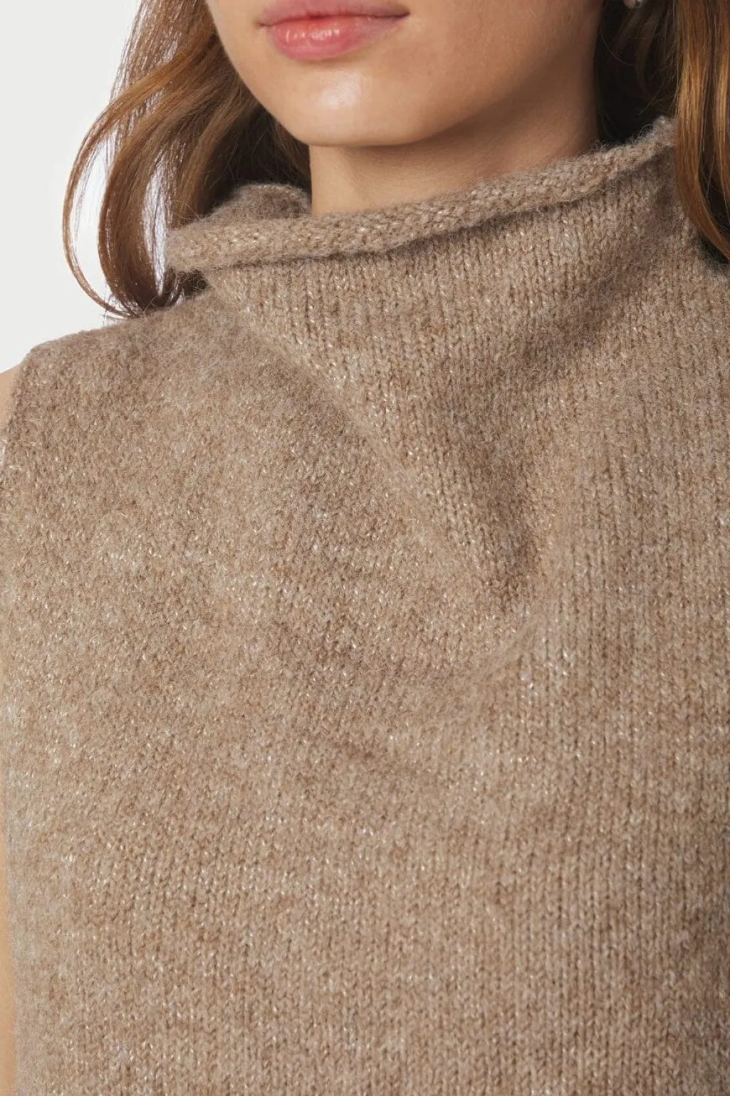 Strikket top fra Neo Noir i mørk sand. Den har høj hals og er ærmeløs med en almindelig pasform.