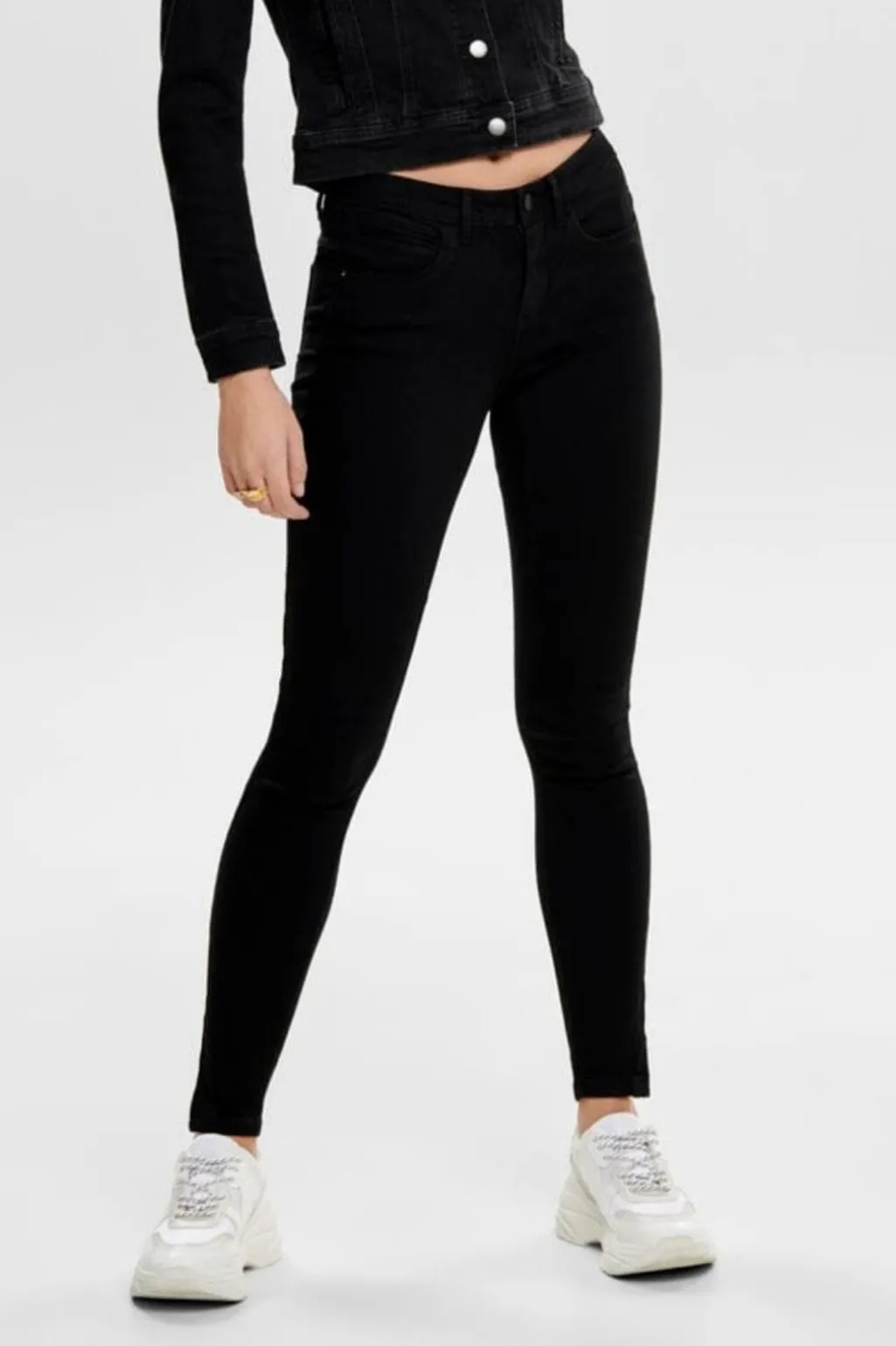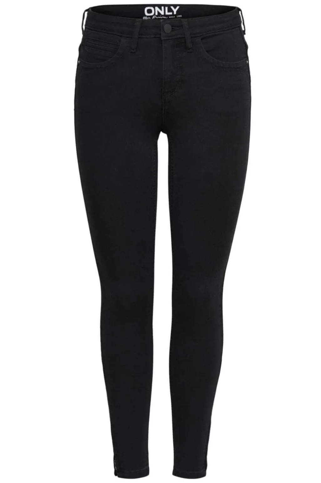 Sorte jeans fra Only med skinny fit og ankellængde. Bukserne har lynlås ved benåbningerne og en klassisk høj talje med bæltestropper.
