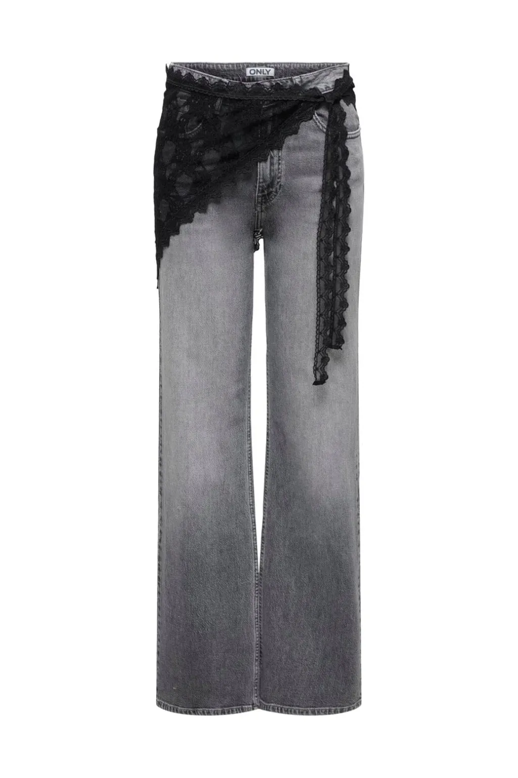 Sort tørklæde fra Only med blondemønster. Lavet af 90% nylon og 10% elastan. Kan bindes om taljen som dekorativt tilbehør til tøjet.