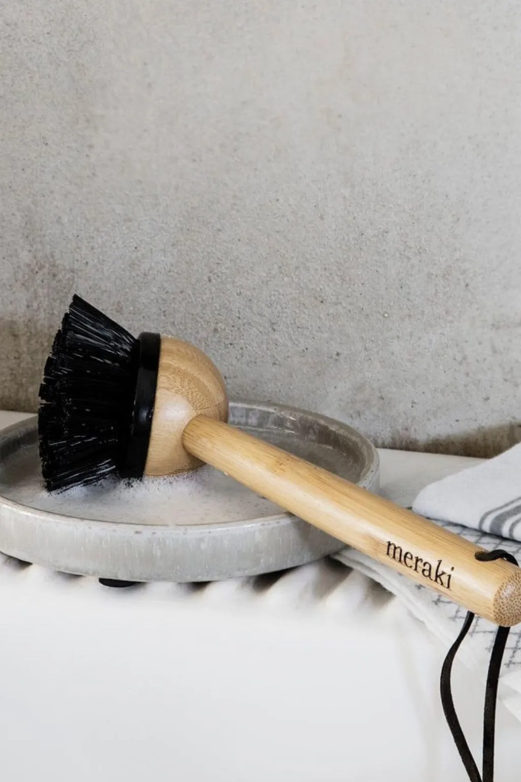 Smuk og funktionel opvaskebørste med bambusgreb fra Meraki. Denne vil se flot ud i ethvert køkken. Skaftet føles godt i hånden, så du kan vaske op i flere timer uden at gå på kompromis med komfort.