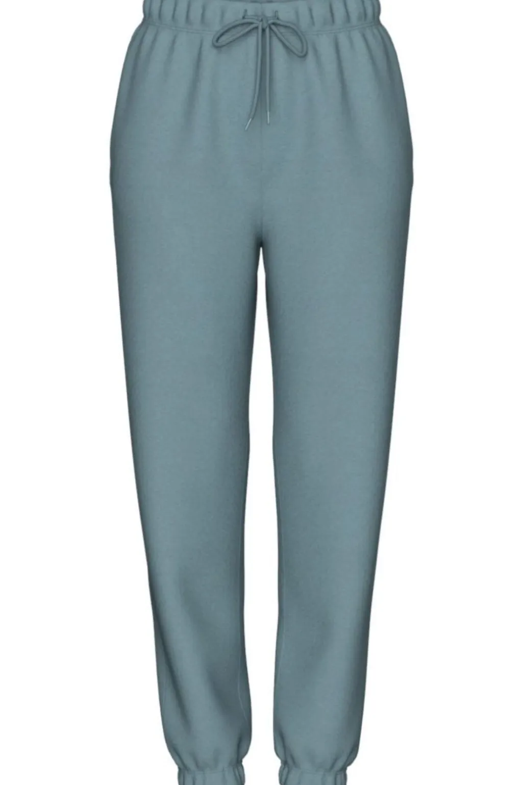 Sweatpants fra Pieces i en gråblå nuance. Bukserne har høj talje med elastik og snøre, der giver mulighed for at justere vidden.