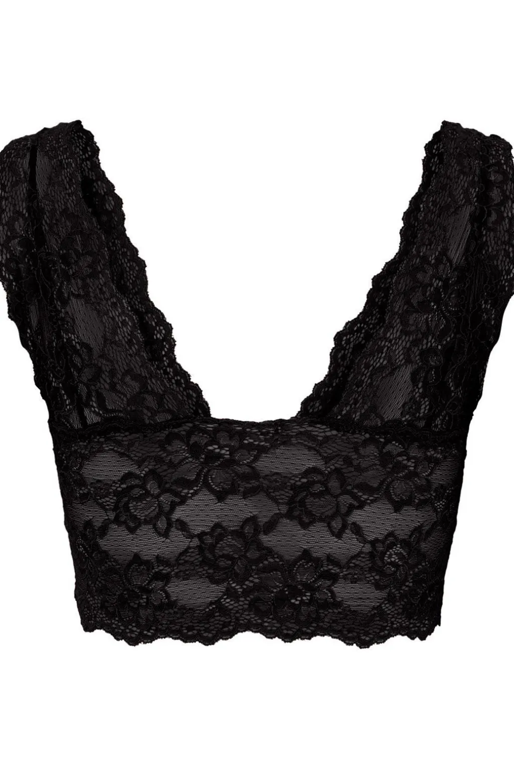 Sort bh fra Pieces med blomstermønstret blonde. Bh’en har brede blondestropper og et detaljeret blomsterdesign, der går igen i hele modellen.