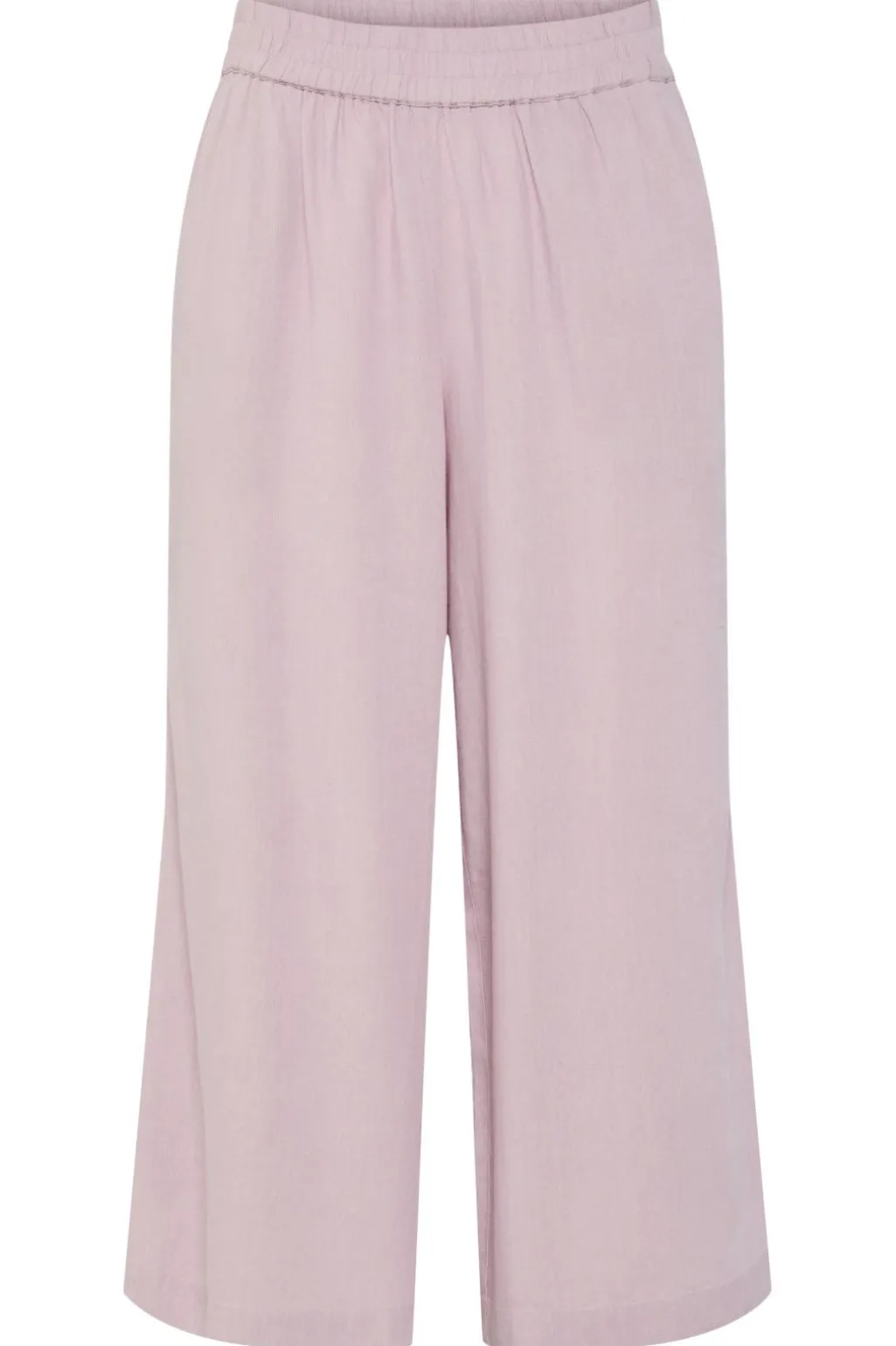 Lyserøde culottebukser fra Pieces i en højtaljet model med brede ben. Bukserne går til midt på læggen og har en løs pasform med flæsedetaljer.