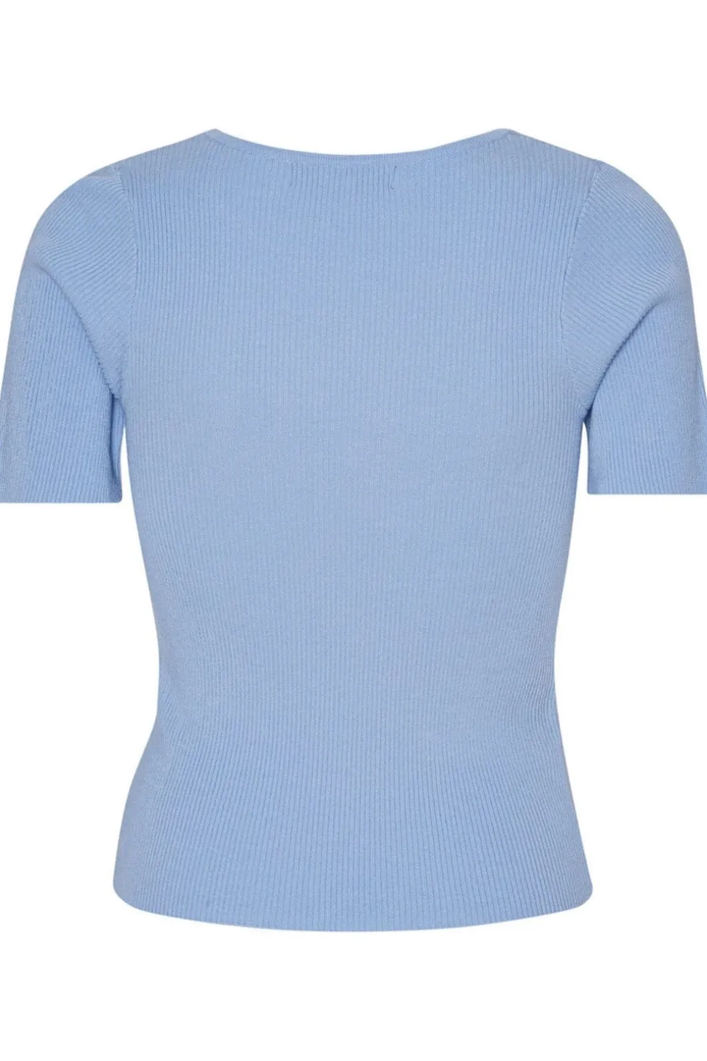 Lysblå ribstrikket top fra A-View med korte ærmer. Den tætsiddende pasform og den ribbede struktur giver toppen et rent og enkelt udtryk.