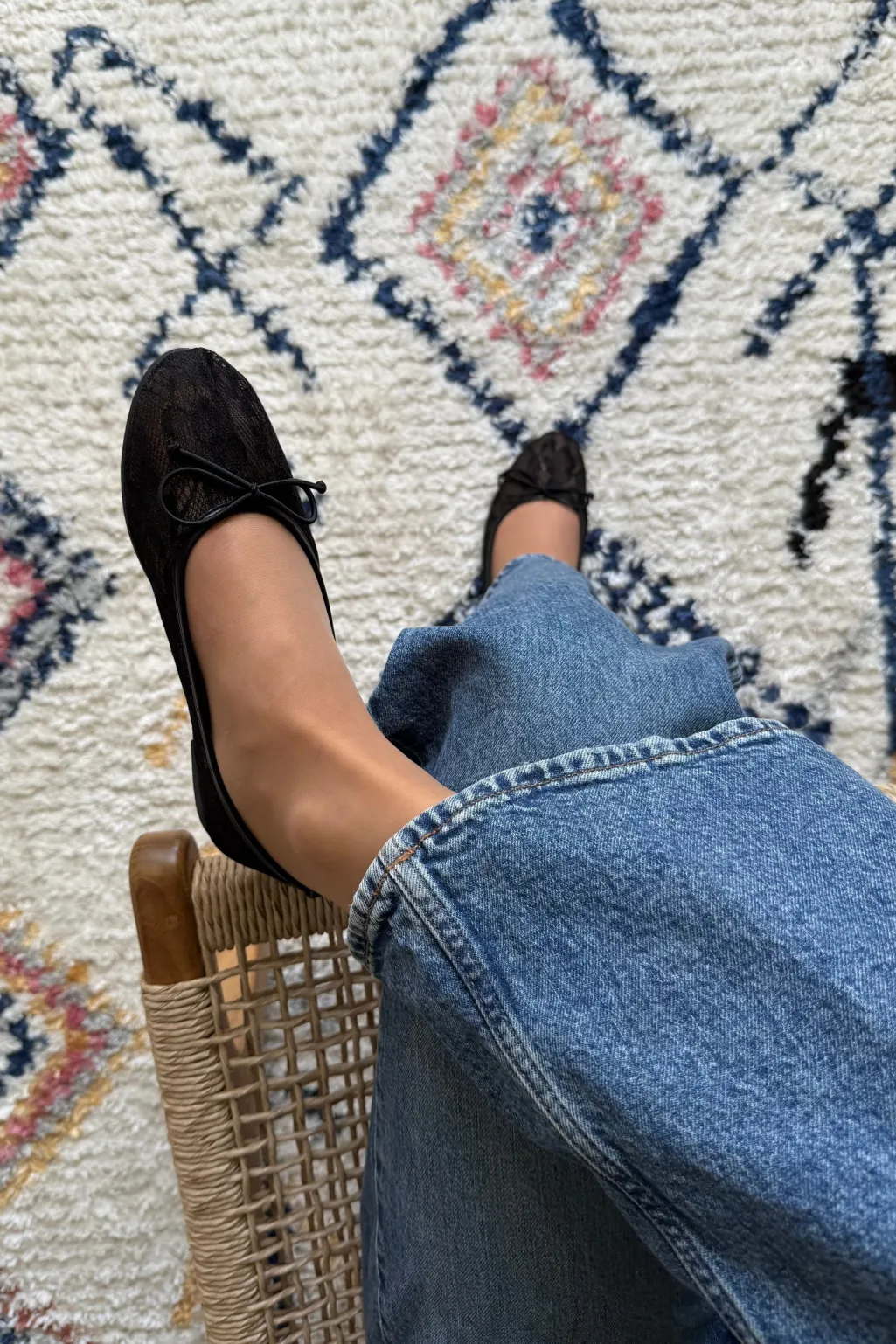 Sort ballerina-sko fra Bloom med snørebånd og sløjfe på fronten. Den sorte farve gør skoen nem at kombinere med andet tøj til både hverdag og fest.