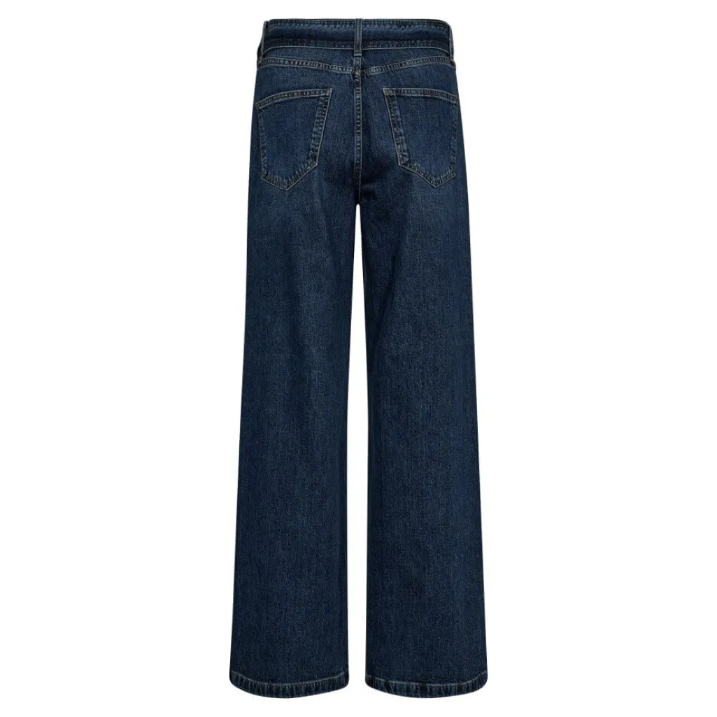 Mørkeblå jeans fra Co´Couture med høj talje og bred pasform. Bukserne har ankellængde og kommer med et bælte i samme stof som jeansene.