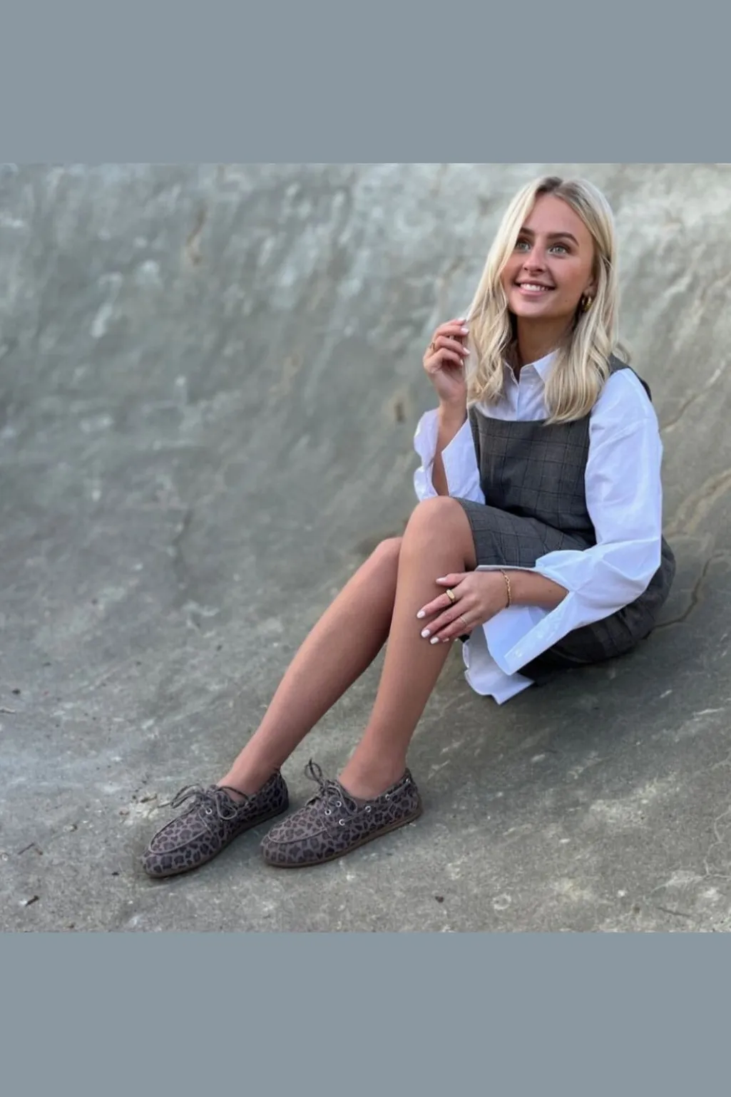 Loafers fra Copenhagen Shoes i ruskind med et brunt leopardprint. Skoene har en rund tå og snørebånd, der giver et afslappet udtryk.