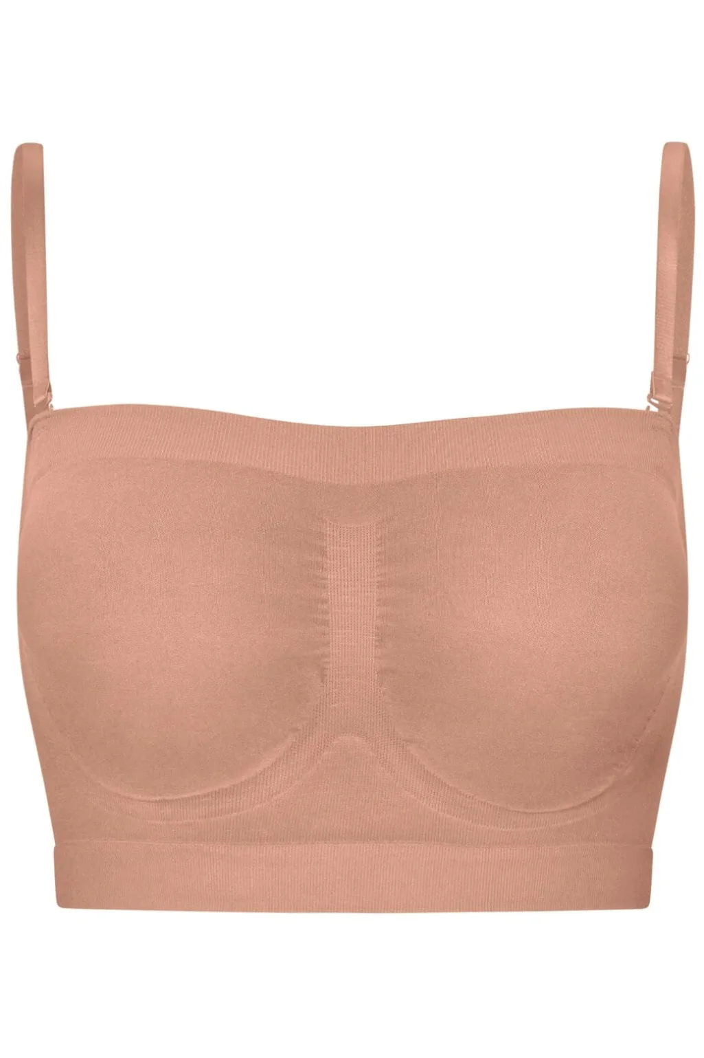 Bandauer fra Lykkeland Ateliér i beige. En sømløs bh uden synlige kanter, der giver en glat silhuet under tøjet.