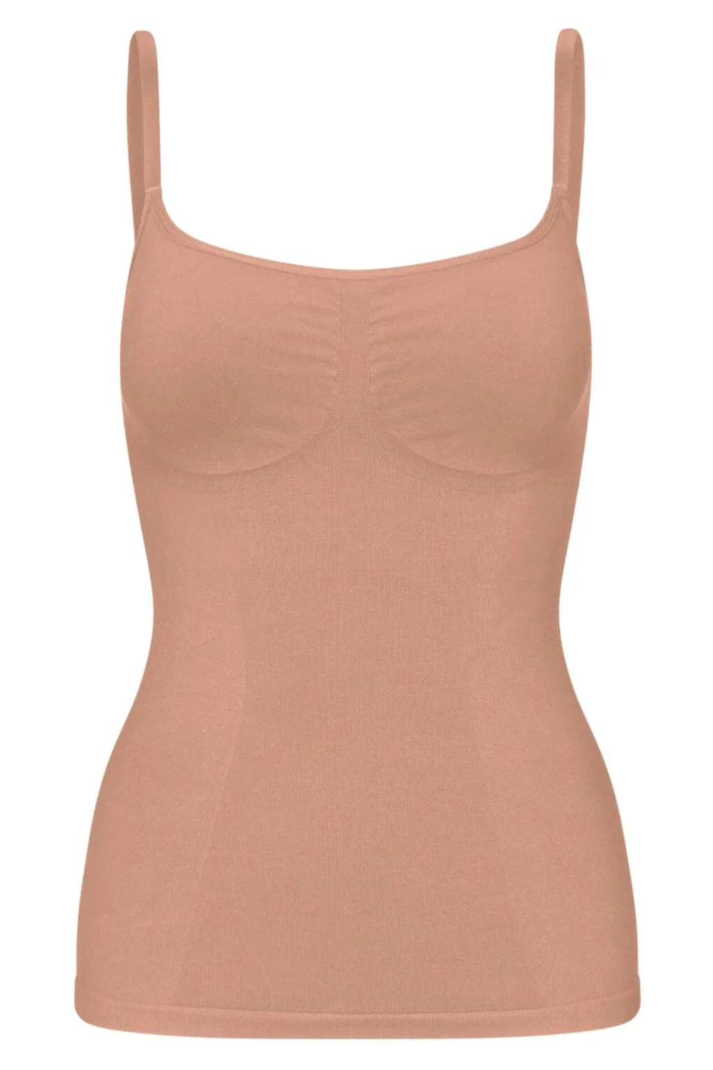 Beige cami top fra Lykkeland Ateliér med tætsiddende pasform. Toppen har tynde spaghetti-stropper og en rund halsudskæring. Den kan bruges både som basis- og statement-piece.